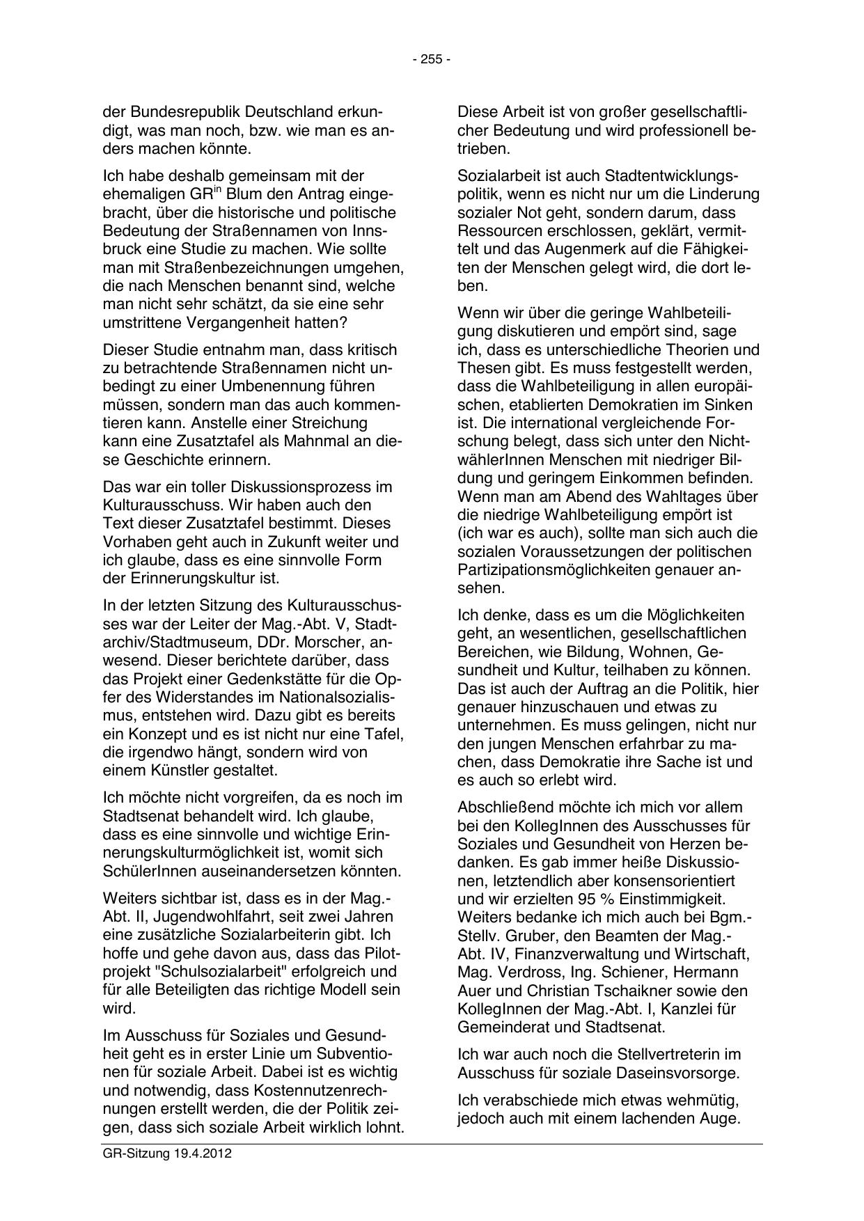 ehemaligen GRin Blum den Antrag eingebracht, über die historische und politische