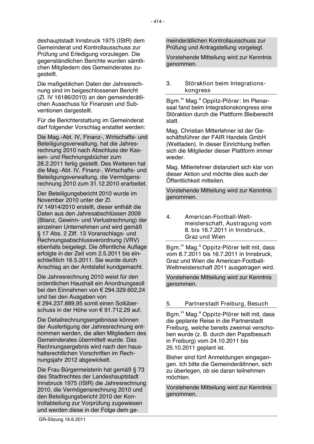 und werden diese in der Folge dem geGR-Sitzung 16.6.2011