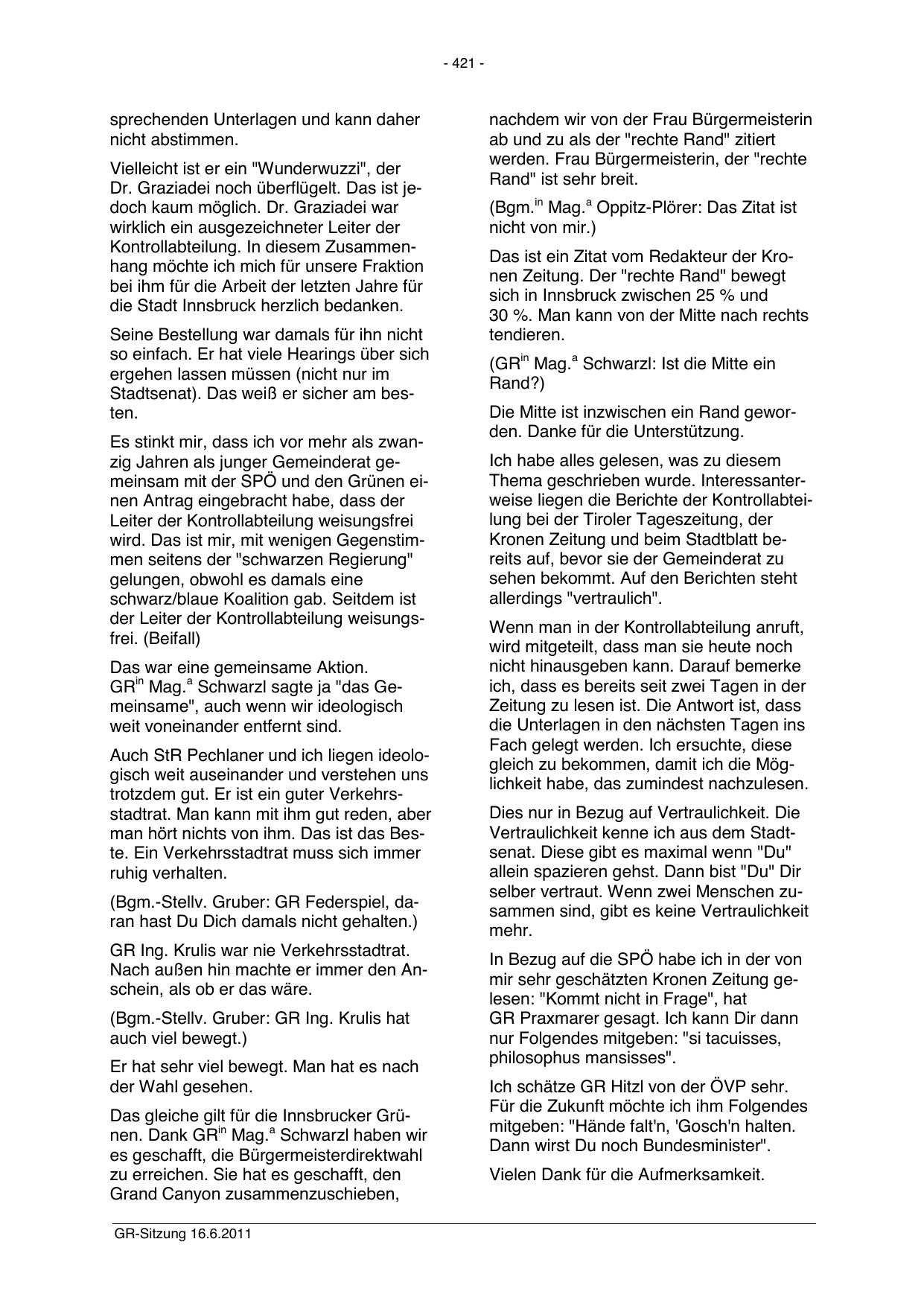 Das gleiche gilt für die Innsbrucker Grünen. Dank GRin Mag.a Schwarzl haben wir