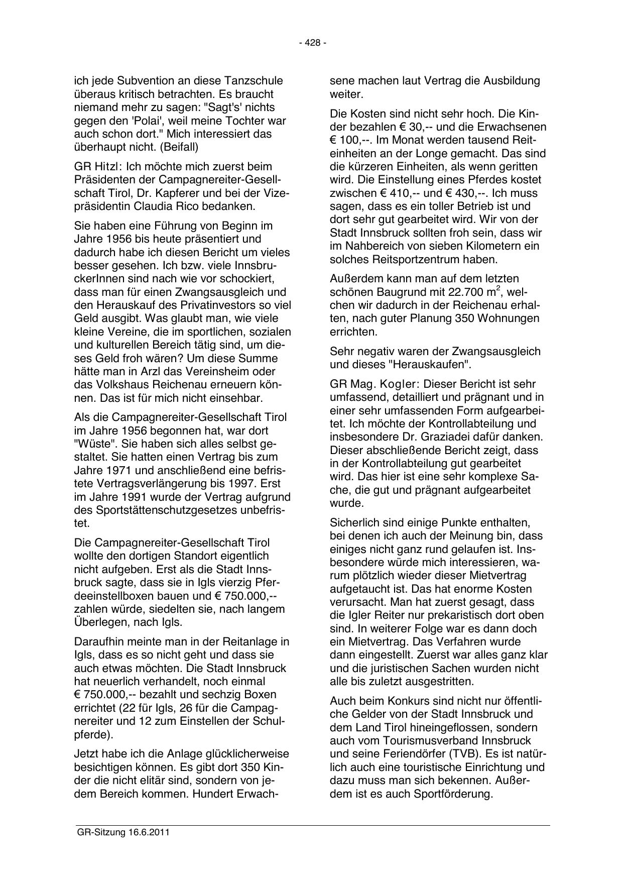 nicht aufgeben. Erst als die Stadt Innsbruck sagte, dass sie in Igls vierzig Pferdeeinstellboxen bauen und € 750.000,-zahlen würde, siedelten sie, nach langem