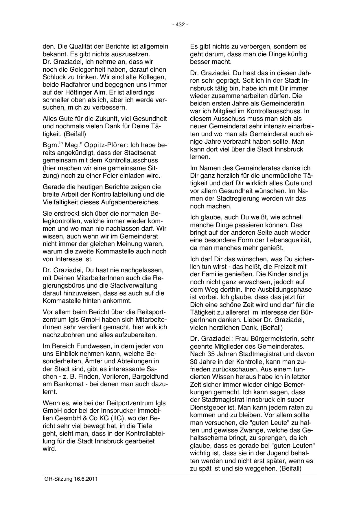 Tätigkeit zu allererst im Interesse der BürgerInnen danken. Lieber Dr. Graziadei,