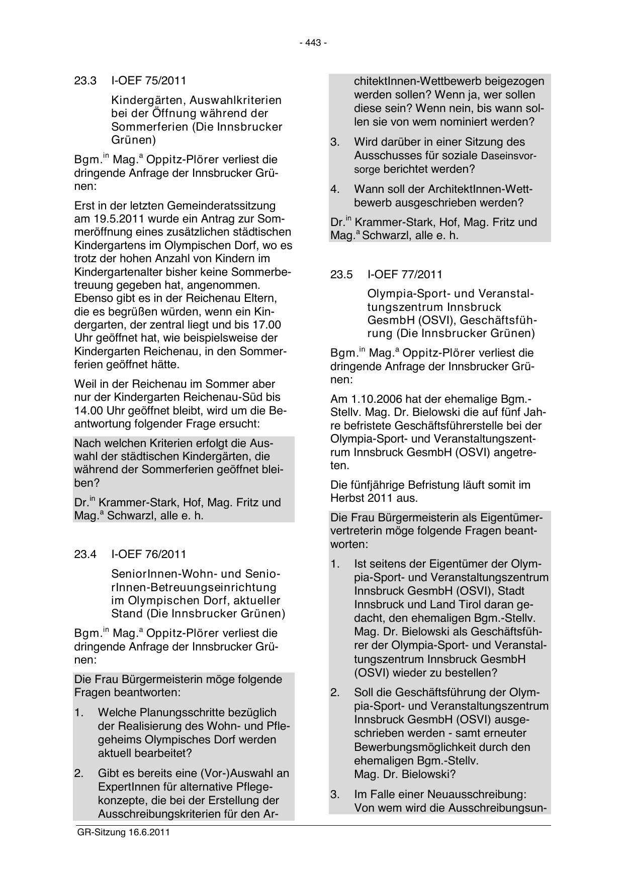 GesmbH (OSVI), Geschäftsführung (Die Innsbrucker Grünen)