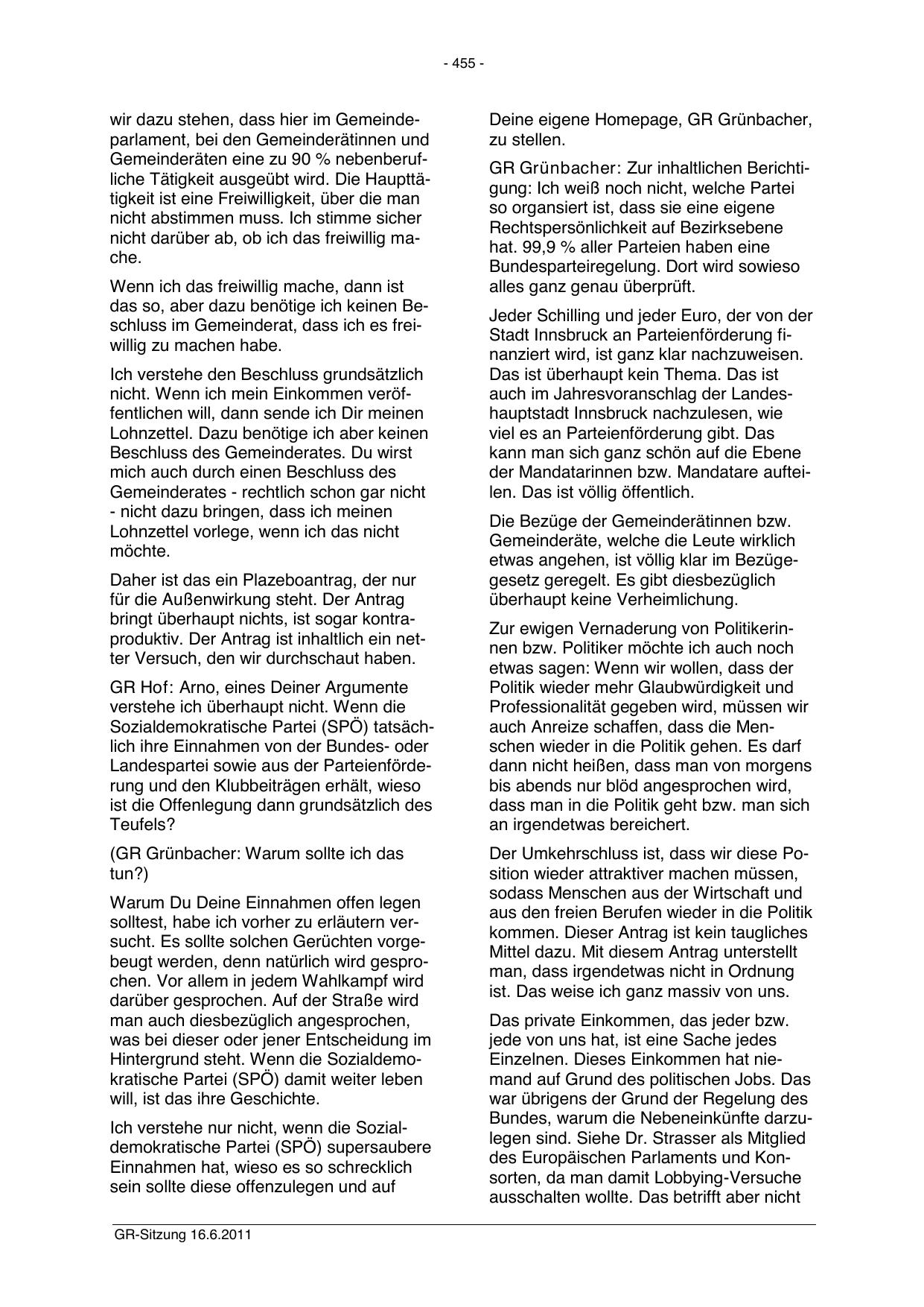 Stadt Innsbruck an Parteienförderung finanziert wird, ist ganz klar nachzuweisen.