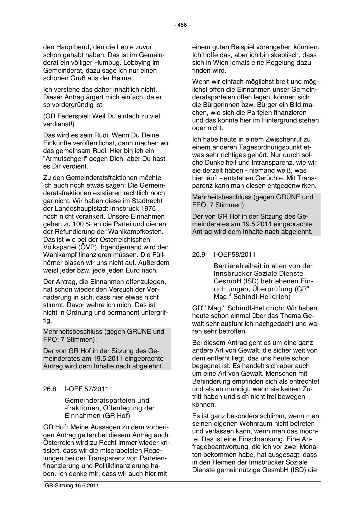 Der von GR Hof in der Sitzung des Gemeinderates am 19.5.2011 eingebrachte