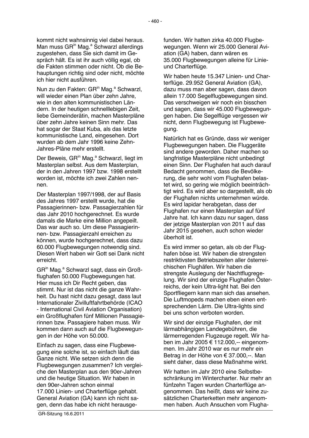 General Aviation (GA) kann ich nicht sagen, denn das habe ich nicht herausgeGR-Sitzung 16.6.2011