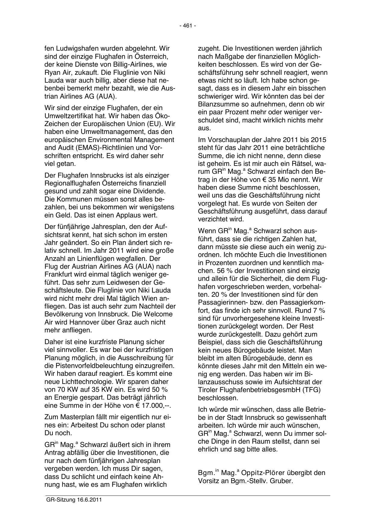 ist geheim. Es ist mir auch ein Rätsel, warum GRin Mag.a Schwarzl einfach den Betrag in der Höhe von € 35 Mio nennt. Wir