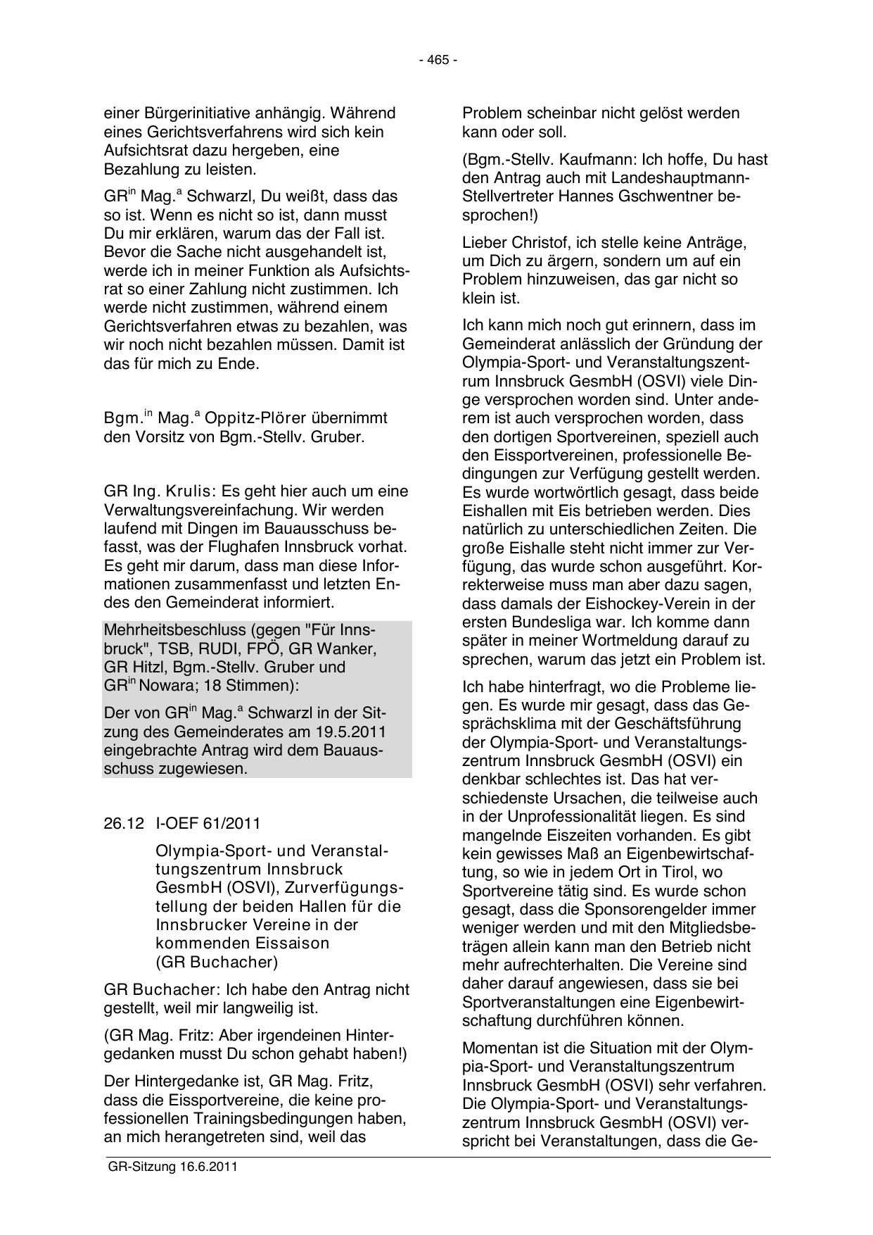 Mehrheitsbeschluss (gegen "Für Innsbruck", TSB, RUDI, FPÖ, GR Wanker,