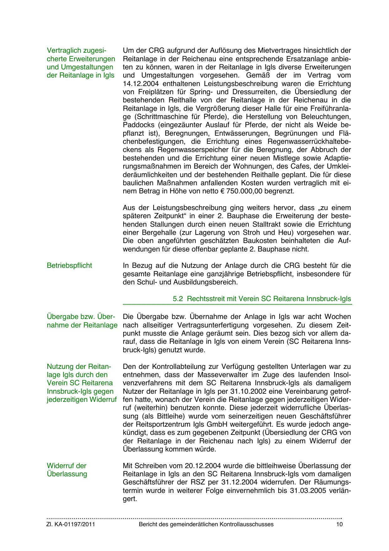 5.2 Rechtsstreit mit Verein SC Reitarena Innsbruck-Igls