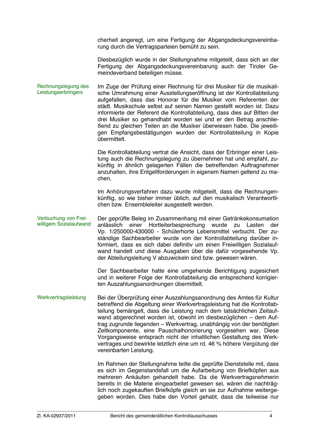 Im Zuge der Prüfung einer Rechnung für drei Musiker für die musikalische Umrahmung einer Ausstellungseröffnung ist der Kontrollabteilung