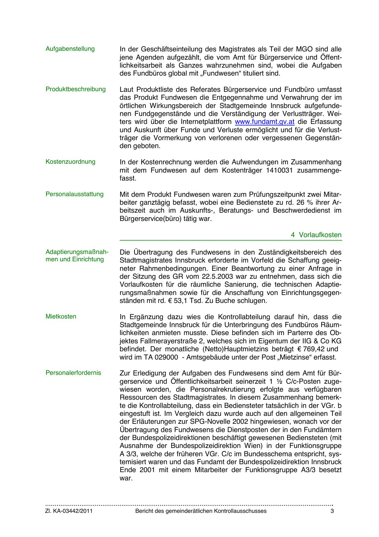 Stadtgemeinde Innsbruck für die Unterbringung des Fundbüros Räumlichkeiten anmieten musste. Diese befinden sich im Parterre des Objektes Fallmerayerstraße 2, welches sich im Eigentum der IIG & Co KG
