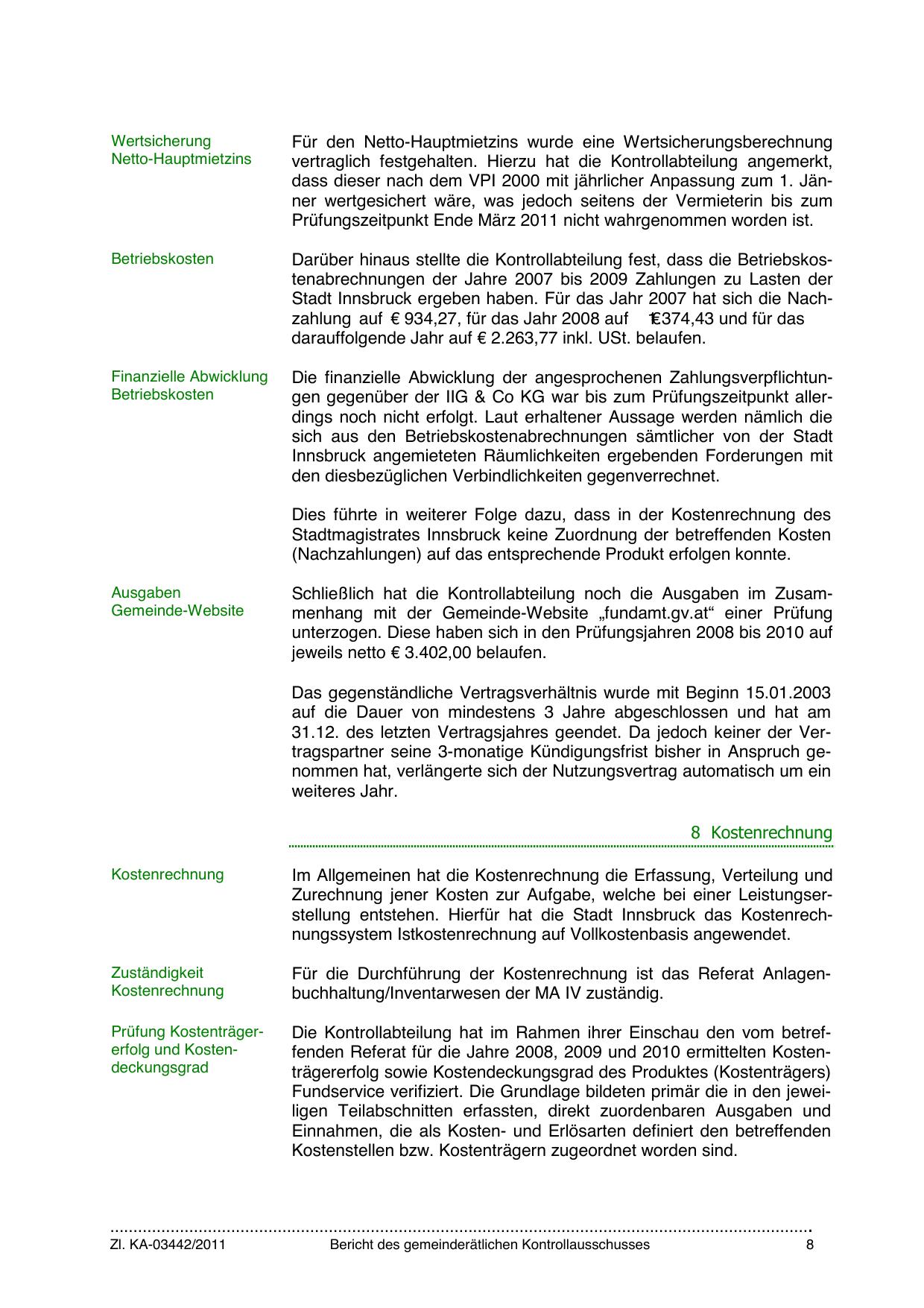 Stadtmagistrates Innsbruck keine Zuordnung der betreffenden Kosten