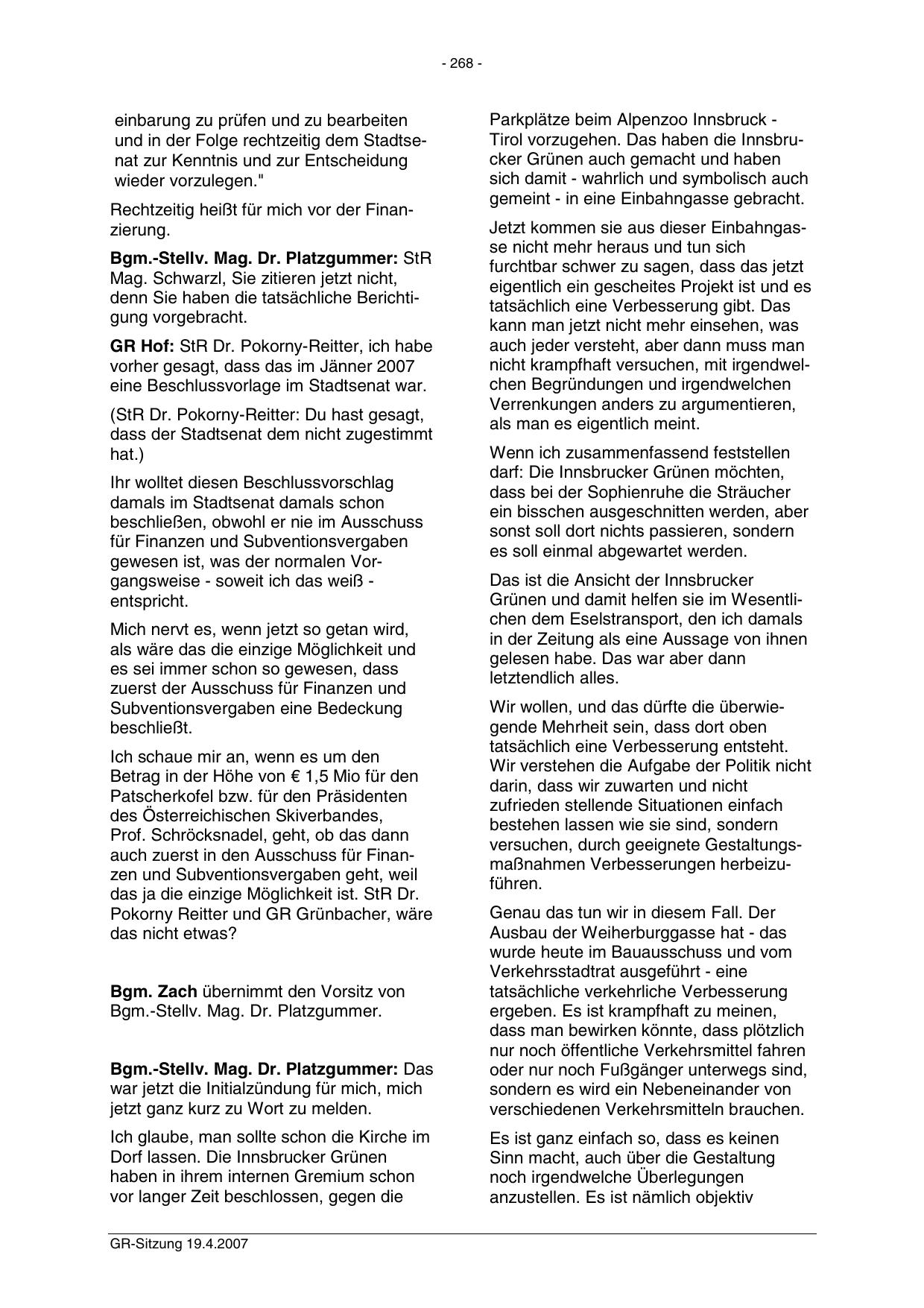 Bgm.-Stellv. Mag. Dr. Platzgummer: StR