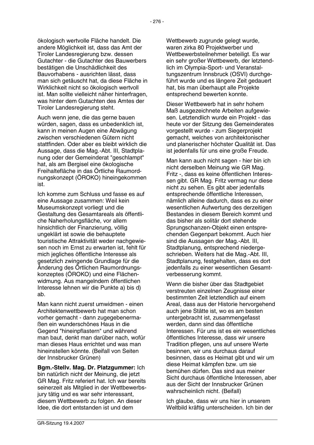Bgm.-Stellv. Mag. Dr. Platzgummer: Ich