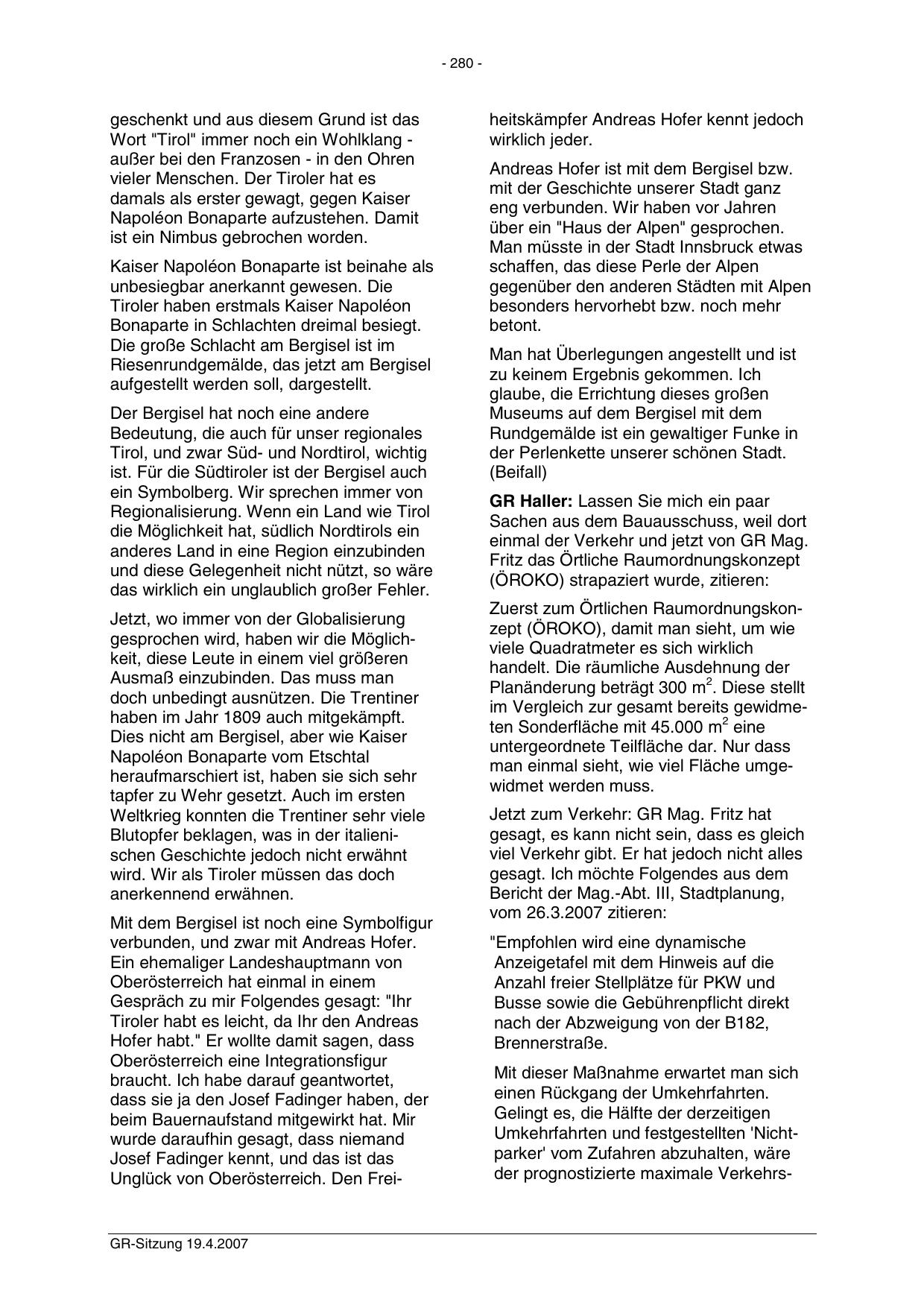 Jetzt zum Verkehr: GR Mag. Fritz hat
