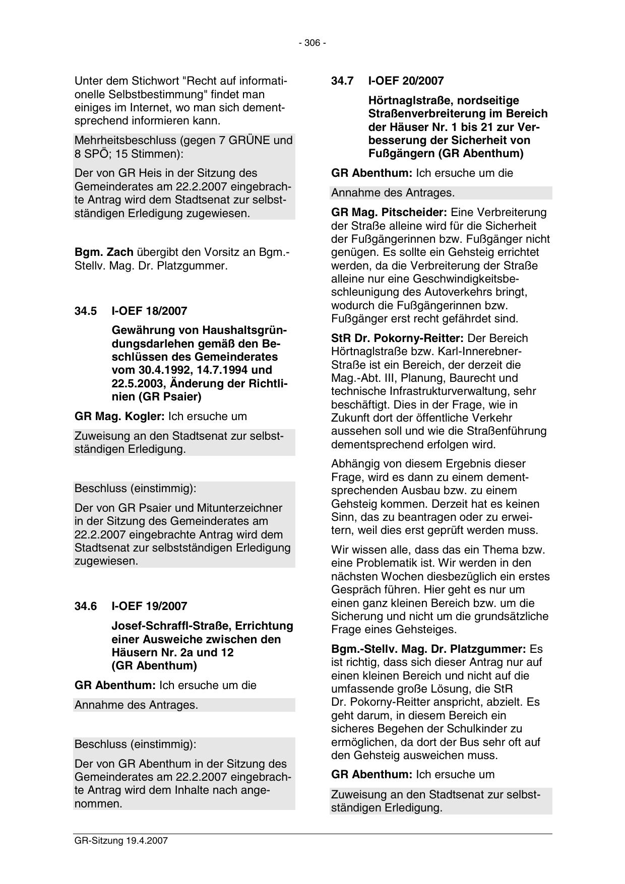 Gemeinderates am 22.2.2007 eingebrachte Antrag wird dem Inhalte nach angenommen.