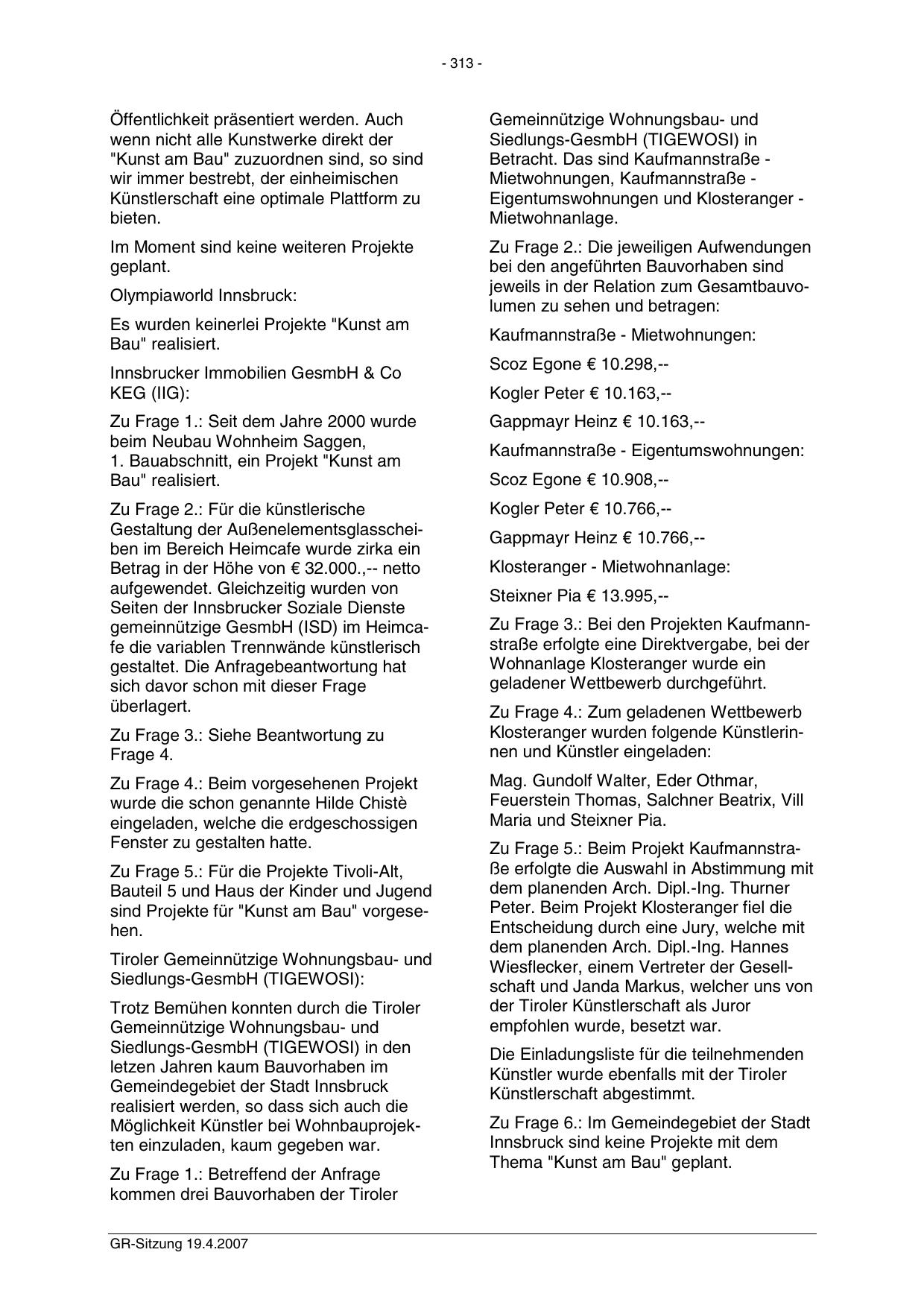 Steixner Pia € 13.995,-Zu Frage 3.: Bei den Projekten Kaufmannstraße erfolgte eine Direktvergabe, bei der