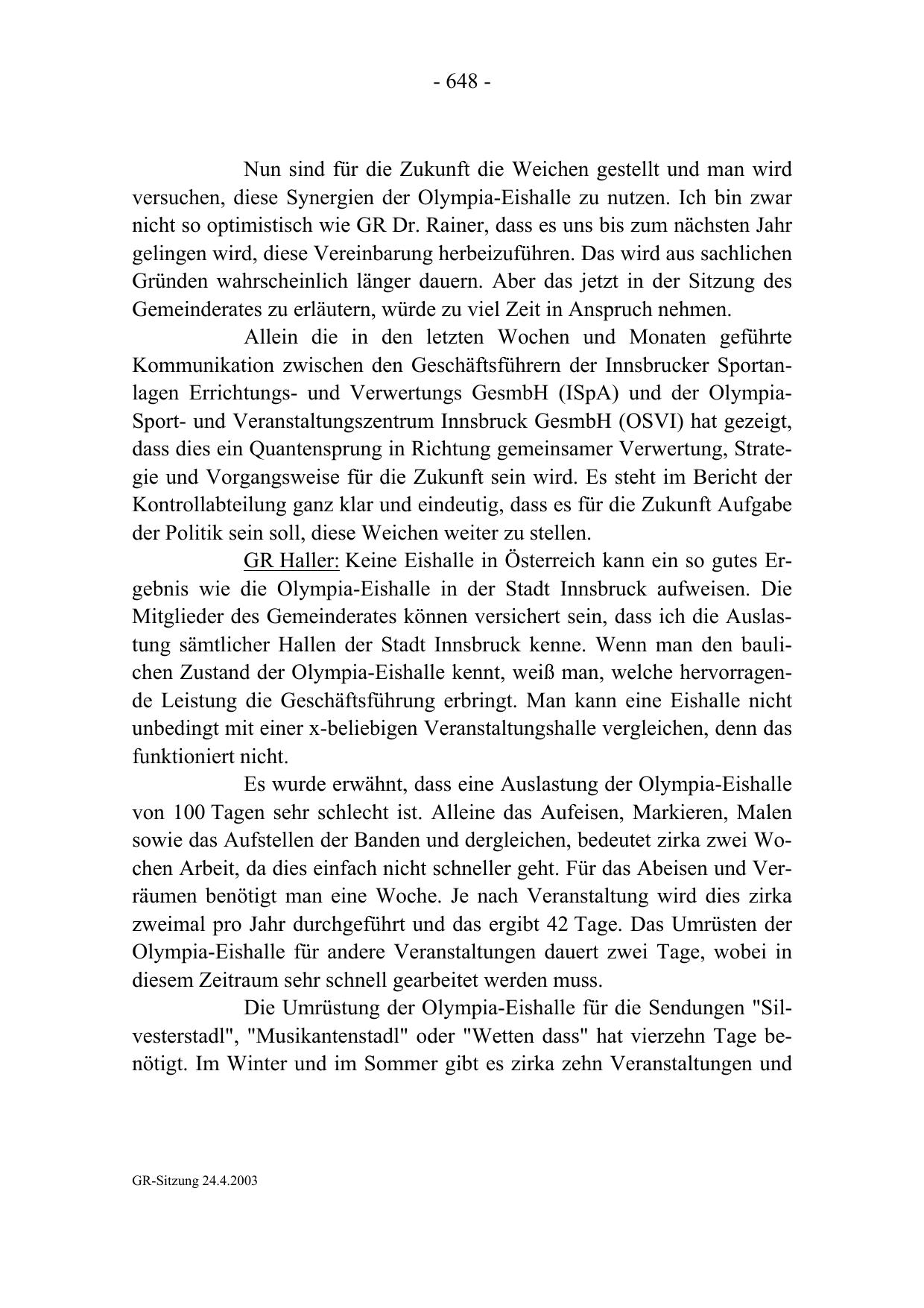 GR Haller: Keine Eishalle in Österreich kann ein so gutes Ergebnis wie die Olympia-Eishalle in der Stadt Innsbruck aufweisen. Die