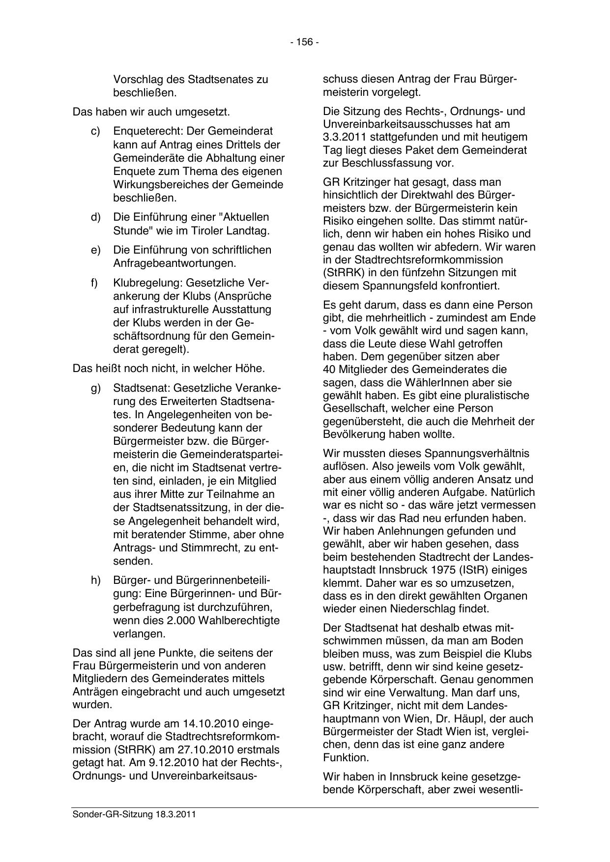 Der Antrag wurde am 14.10.2010 eingebracht, worauf die Stadtrechtsreformkommission (StRRK) am 27.10.2010 erstmals
