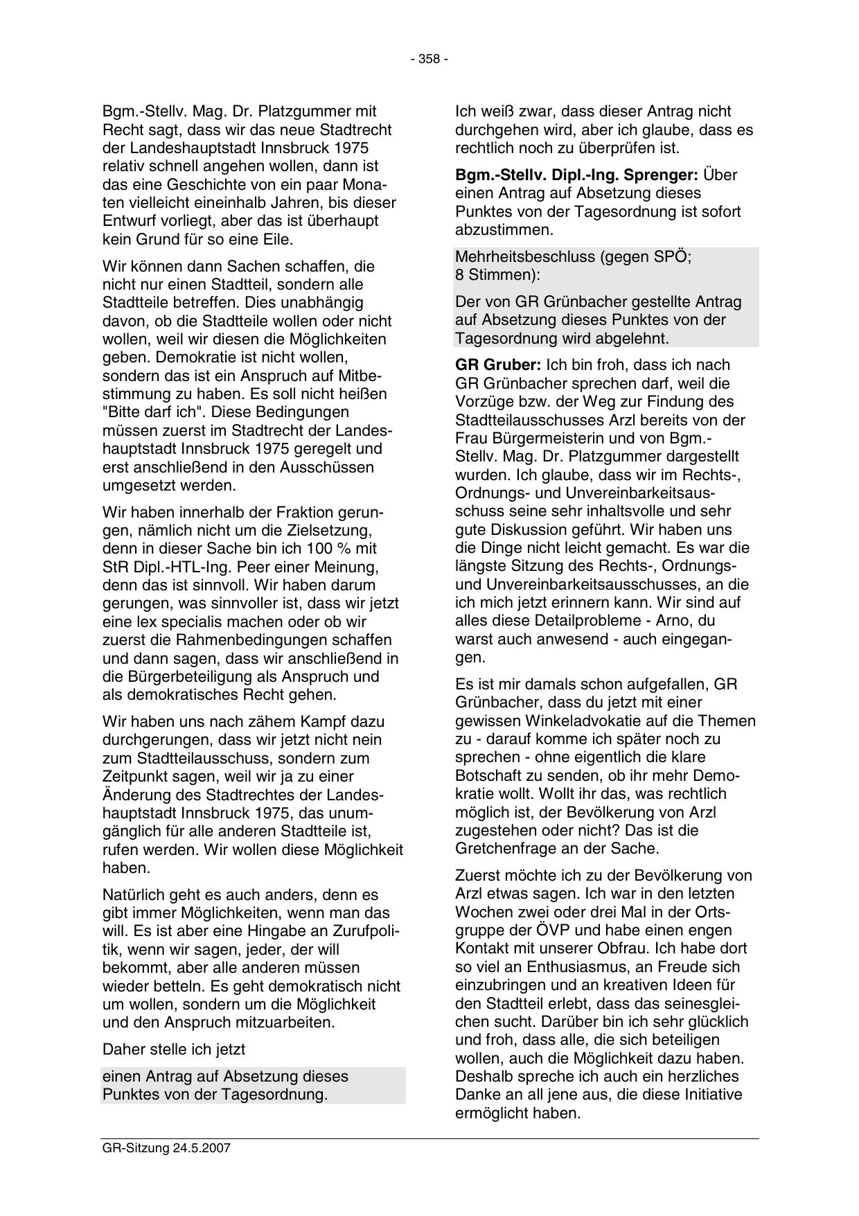 Änderung des Stadtrechtes der Landeshauptstadt Innsbruck 1975, das unumgänglich für alle anderen Stadtteile ist,