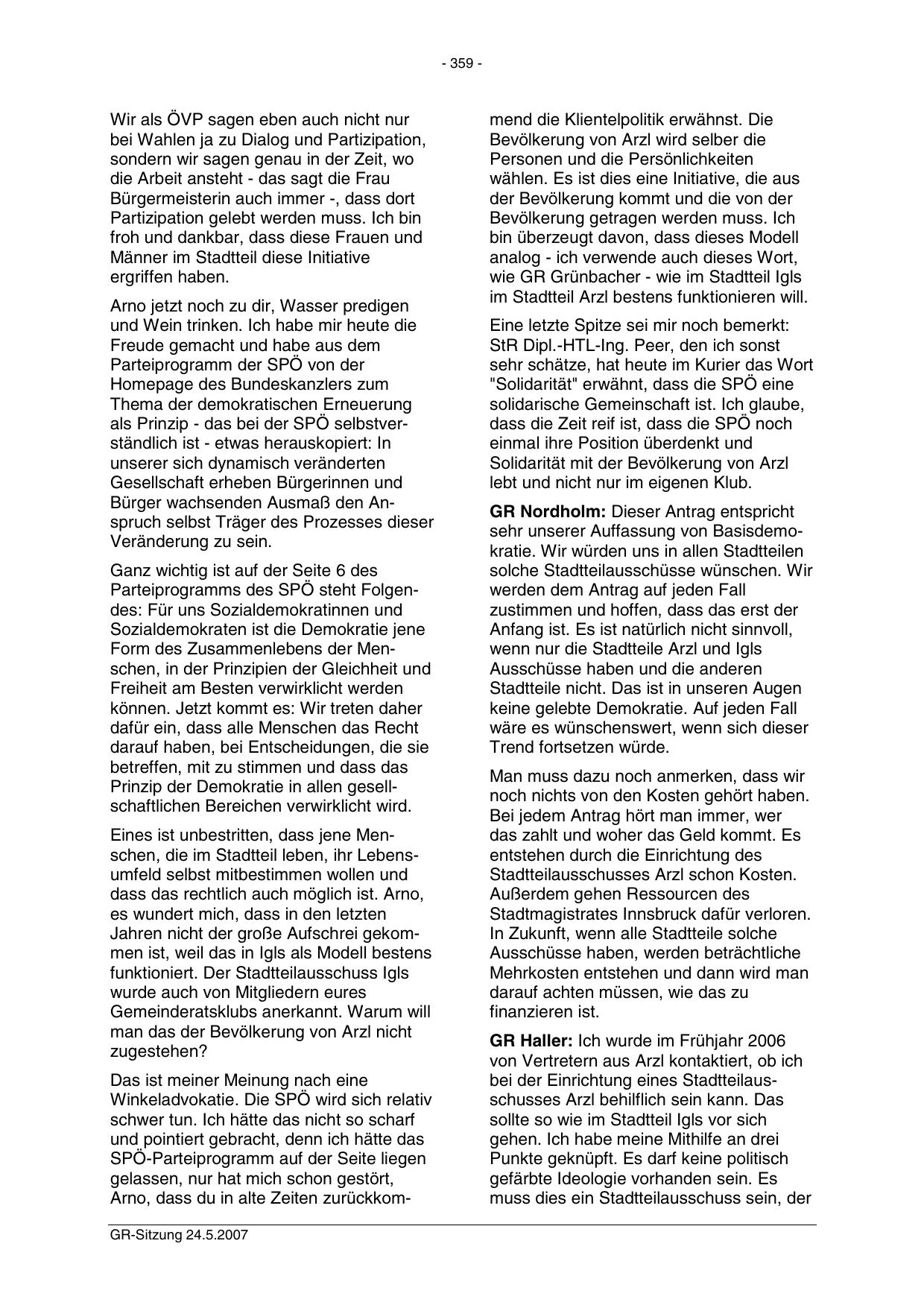 Arno, dass du in alte Zeiten zurückkomGR-Sitzung 24.5.2007