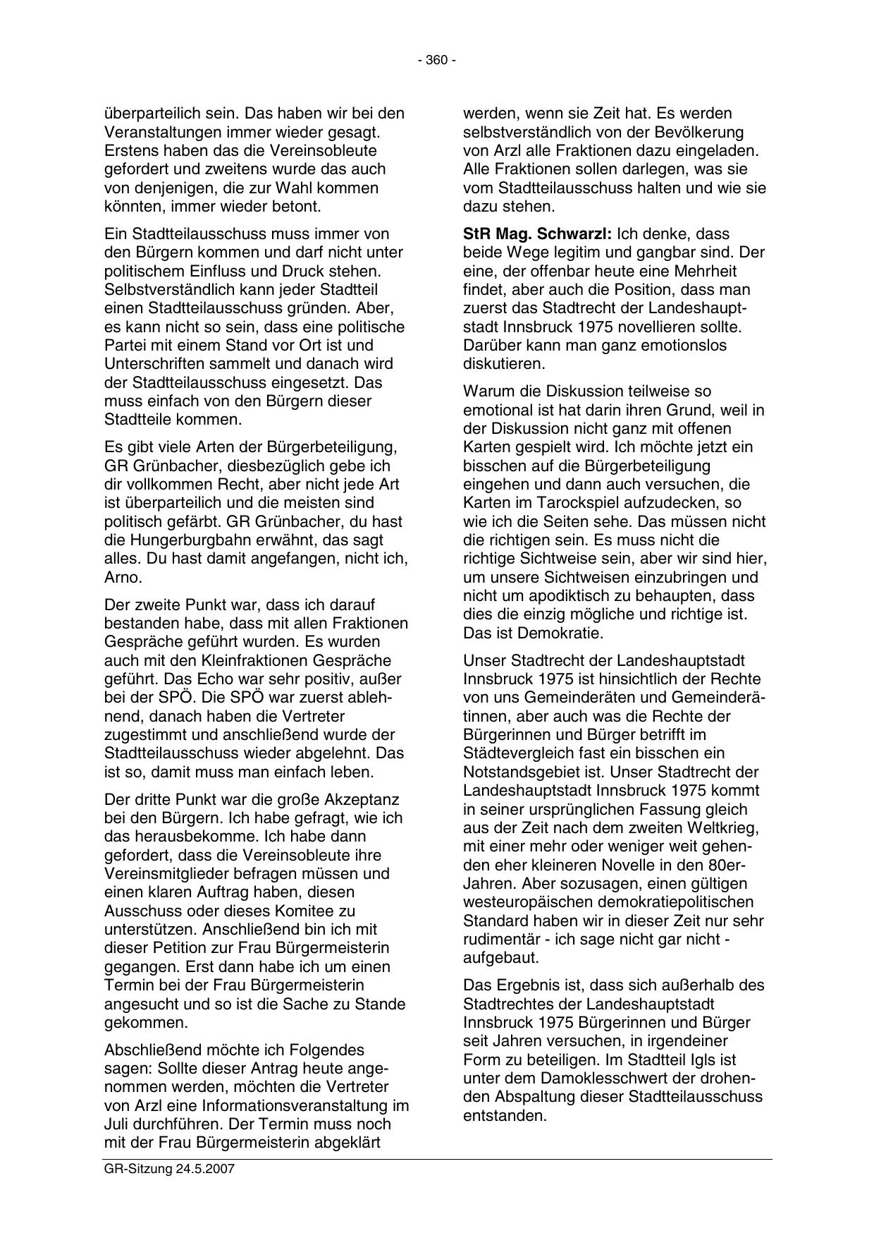 zuerst das Stadtrecht der Landeshauptstadt Innsbruck 1975 novellieren sollte.