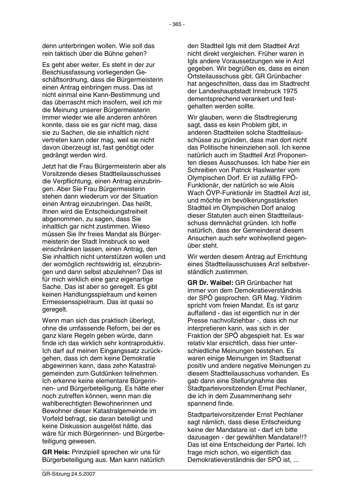 eines Stadtteilausschusses Arzl selbstverständlich zustimmen.