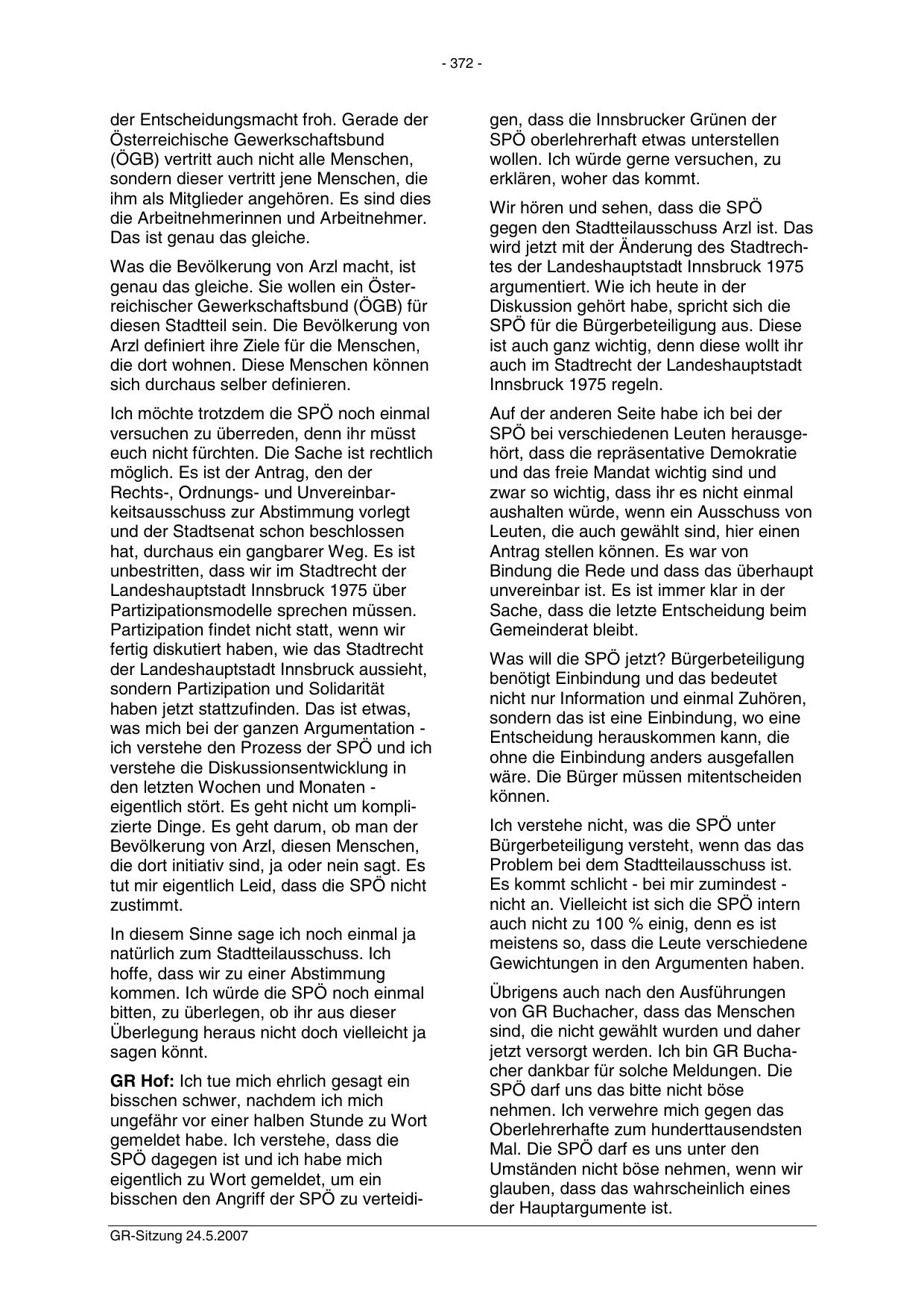 bisschen den Angriff der SPÖ zu verteidiGR-Sitzung 24.5.2007