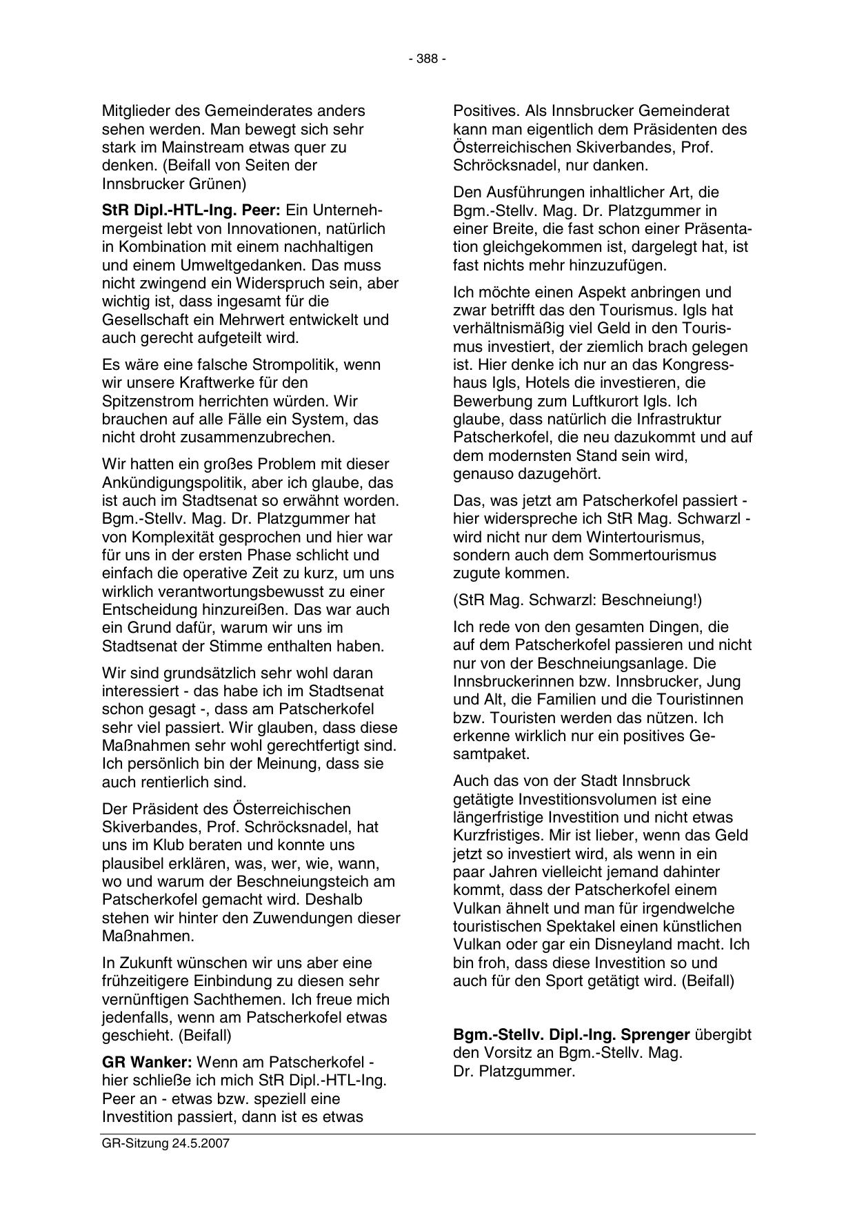 GR Wanker: Wenn am Patscherkofel hier schließe ich mich StR Dipl.-HTL-Ing.