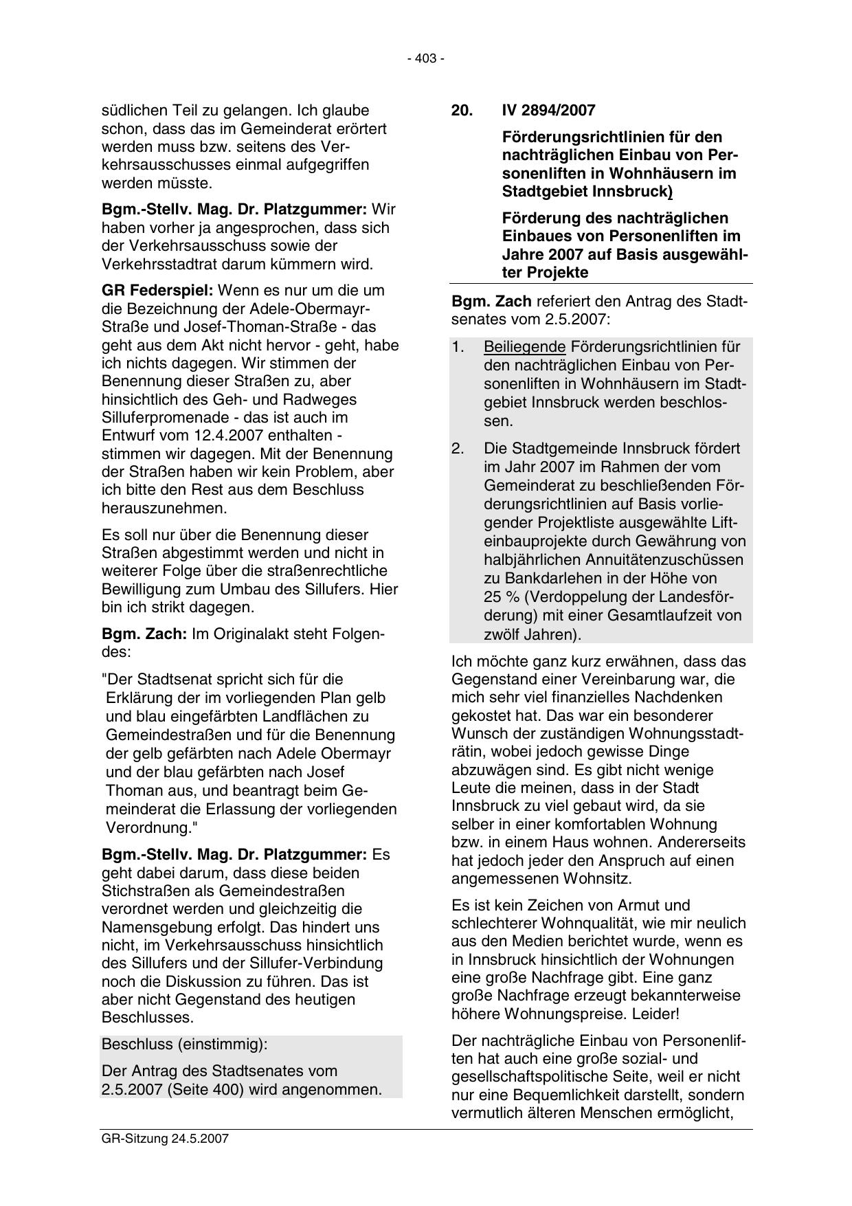 Bgm.-Stellv. Mag. Dr. Platzgummer: Es