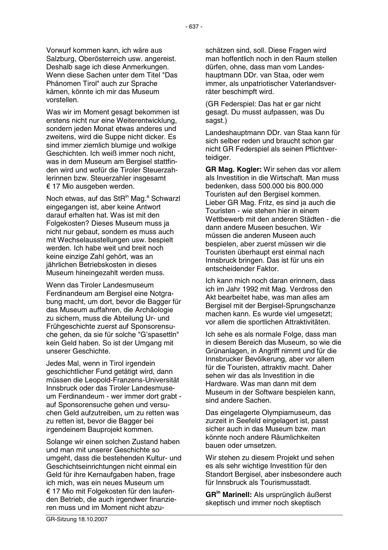 € 17 Mio mit Folgekosten für den laufenden Betrieb, die auch irgendwer finanzieren muss und im Moment nicht abzuGR-Sitzung 18.10.2007