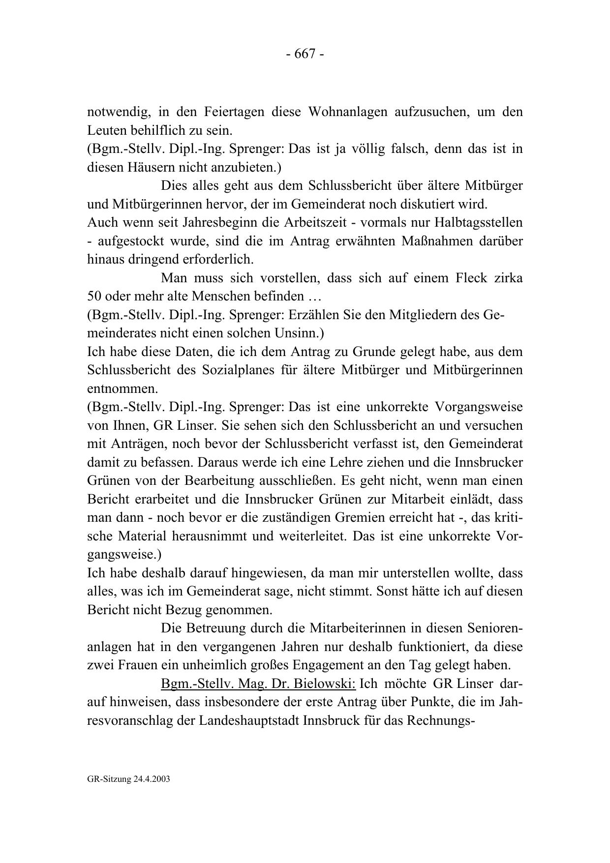 Bgm.-Stellv. Mag. Dr. Bielowski: Ich möchte GR Linser darauf hinweisen, dass insbesondere der erste Antrag über Punkte, die im Jahresvoranschlag der Landeshauptstadt Innsbruck für das Rechnungs-