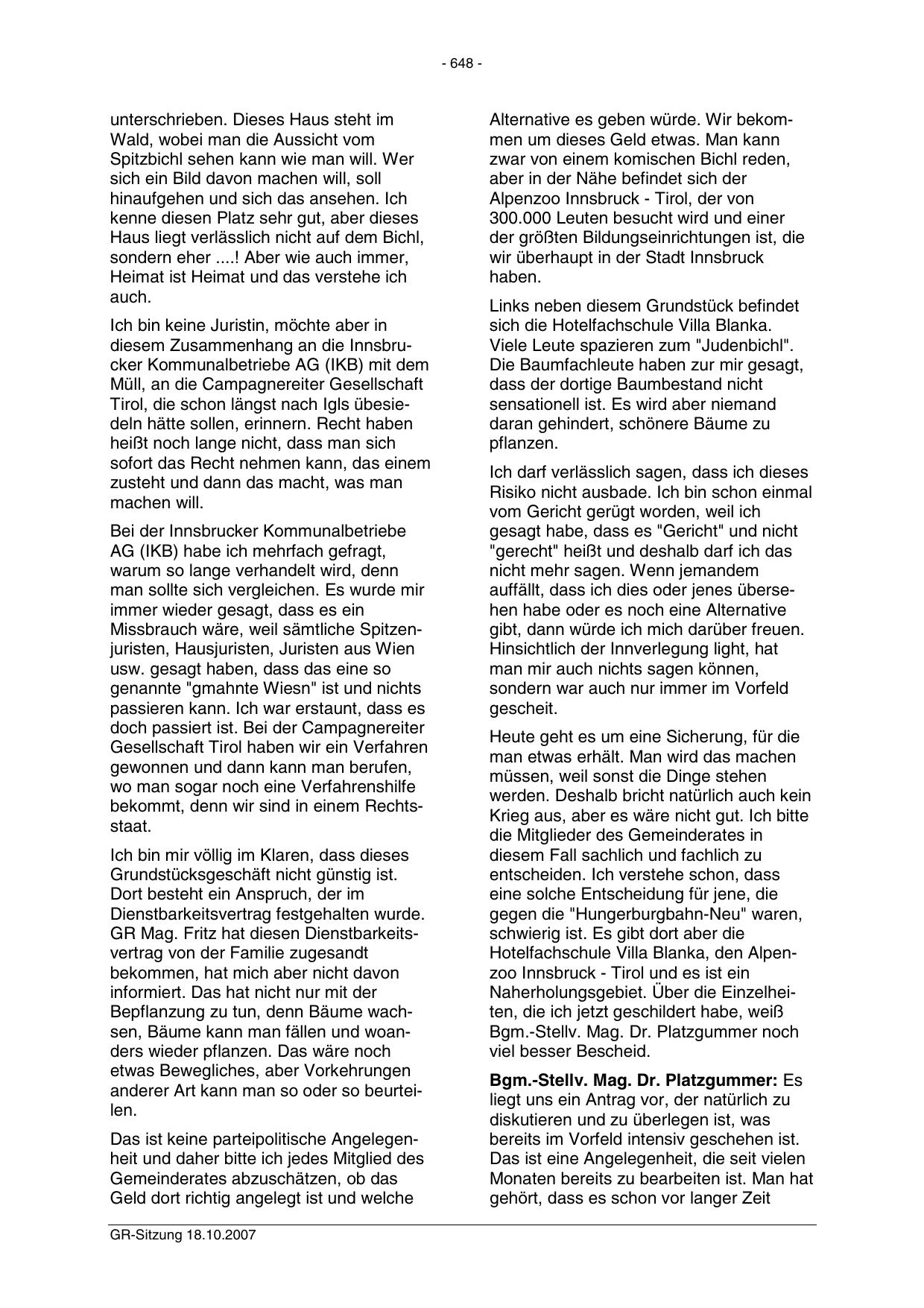 Bgm.-Stellv. Mag. Dr. Platzgummer: Es
