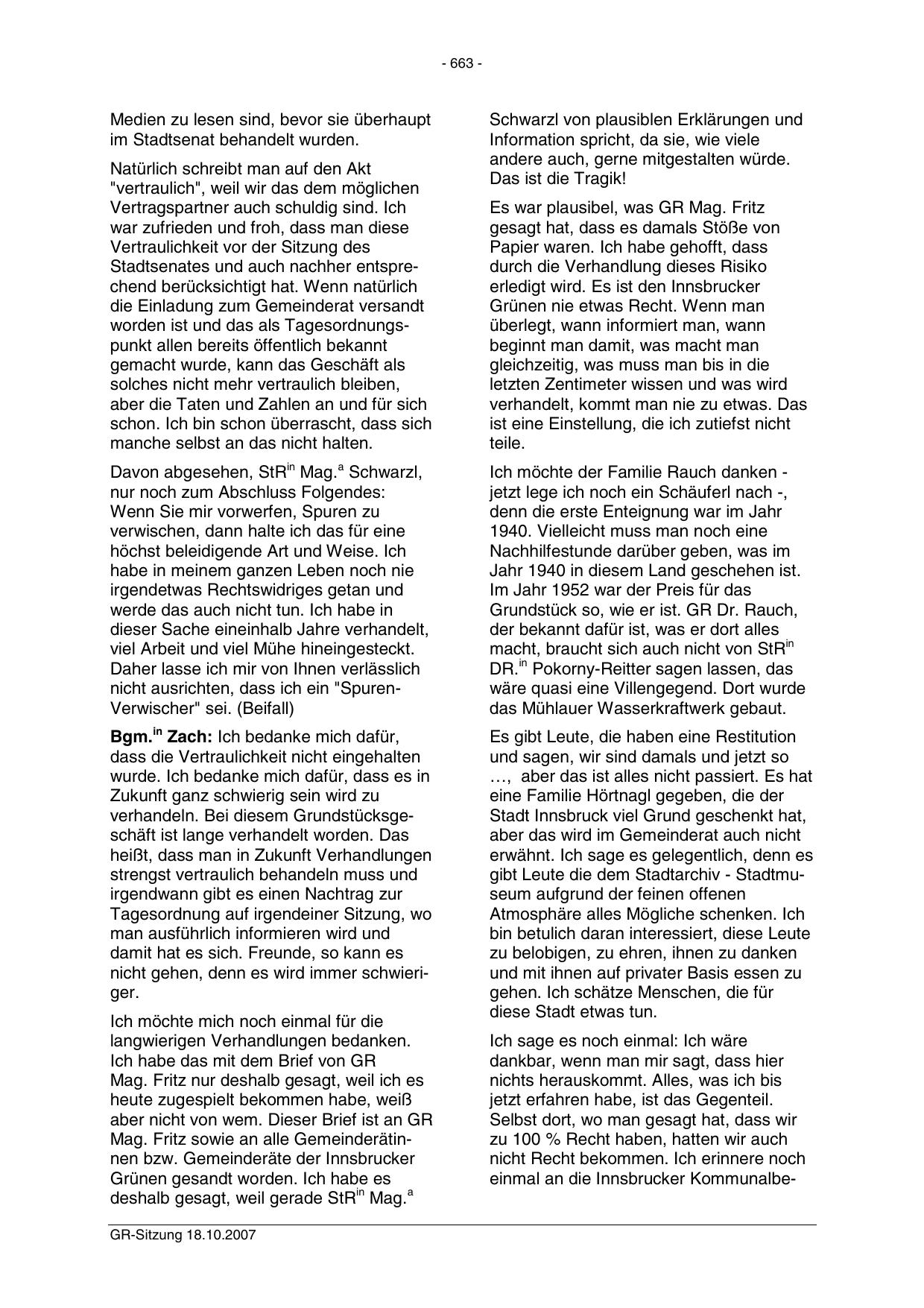 Mag. Fritz sowie an alle Gemeinderätinnen bzw. Gemeinderäte der Innsbrucker