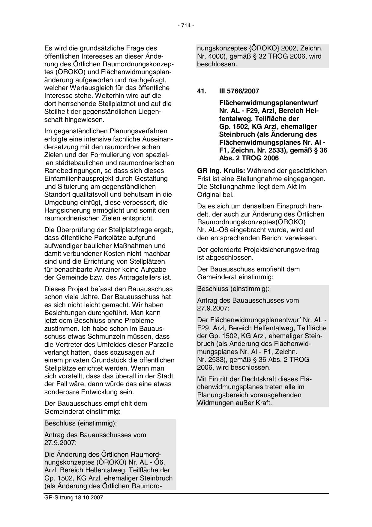 (als Änderung des Örtlichen RaumordGR-Sitzung 18.10.2007