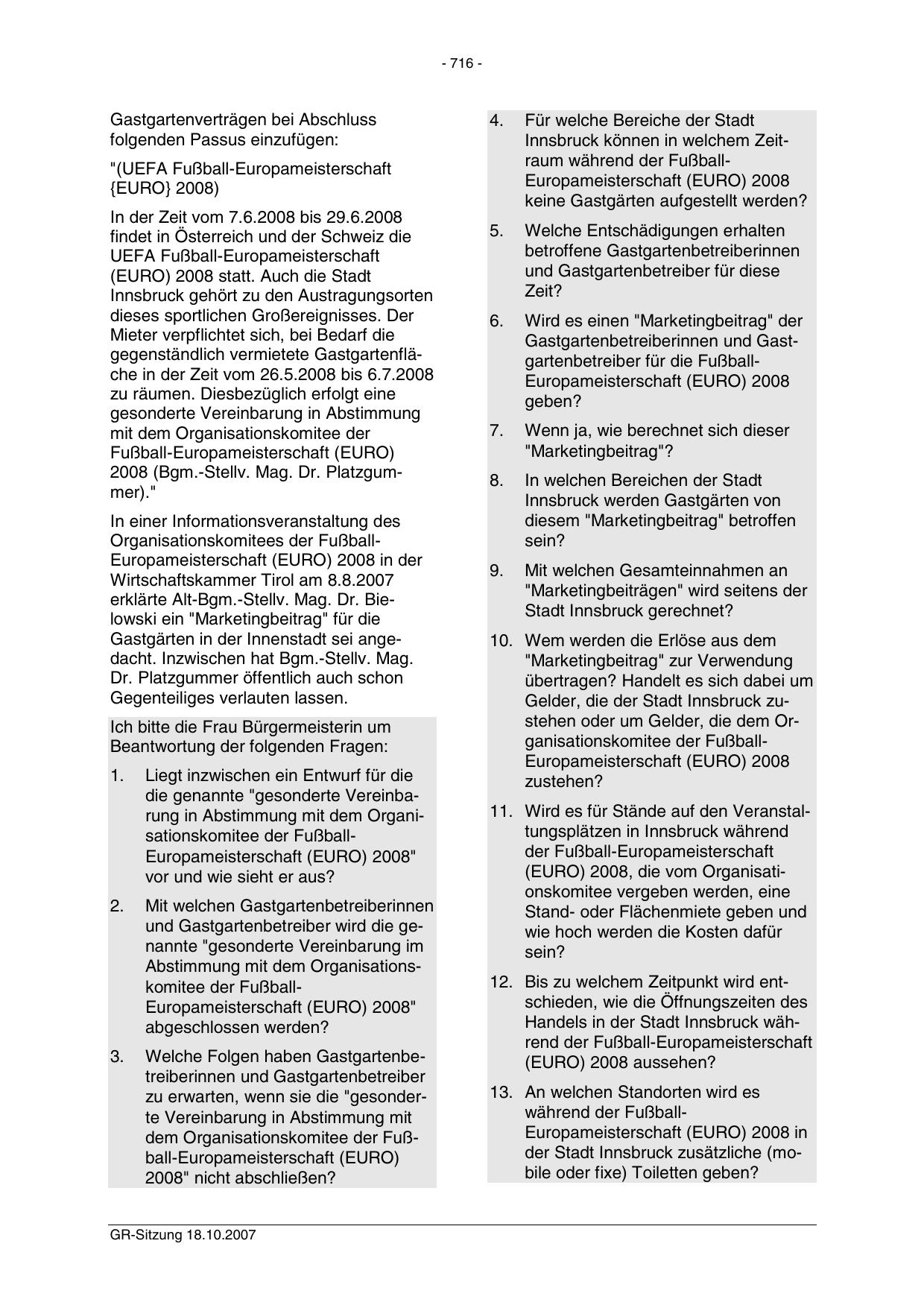Gelder, die der Stadt Innsbruck zustehen oder um Gelder, die dem Organisationskomitee der FußballEuropameisterschaft (EURO) 2008