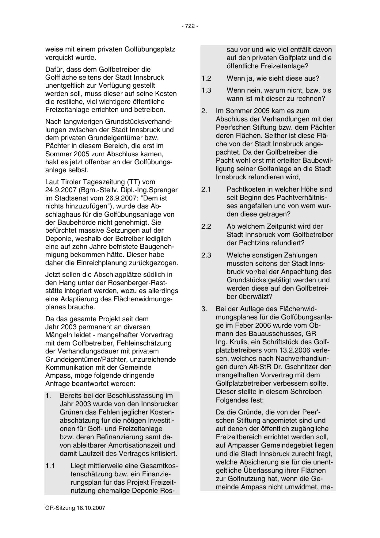 Ing. Krulis, ein Schriftstück des Golfplatzbetreibers vom 13.2.2006 verlesen, welches nach Nachverhandlungen durch Alt-StR Dr. Gschnitzer den
