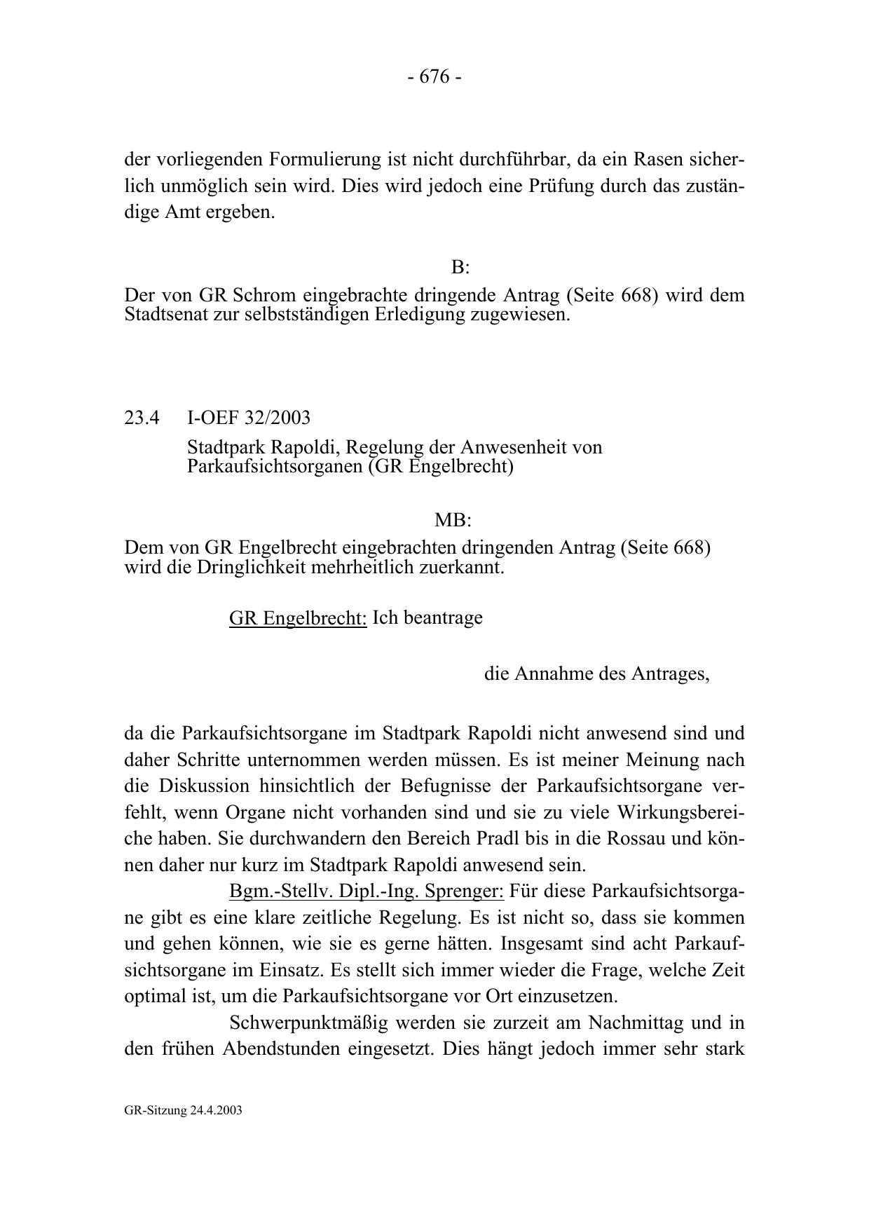Dem von GR Engelbrecht eingebrachten dringenden Antrag (Seite 668)