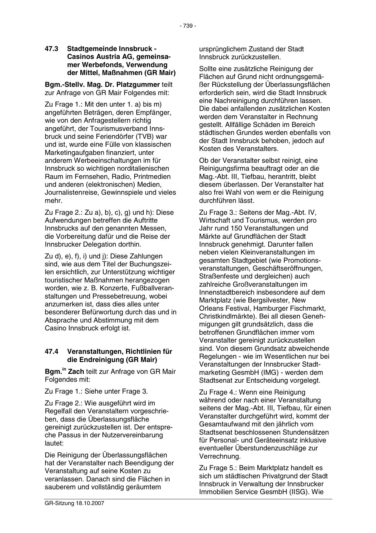 Bgm.in Zach teilt zur Anfrage von GR Mair
