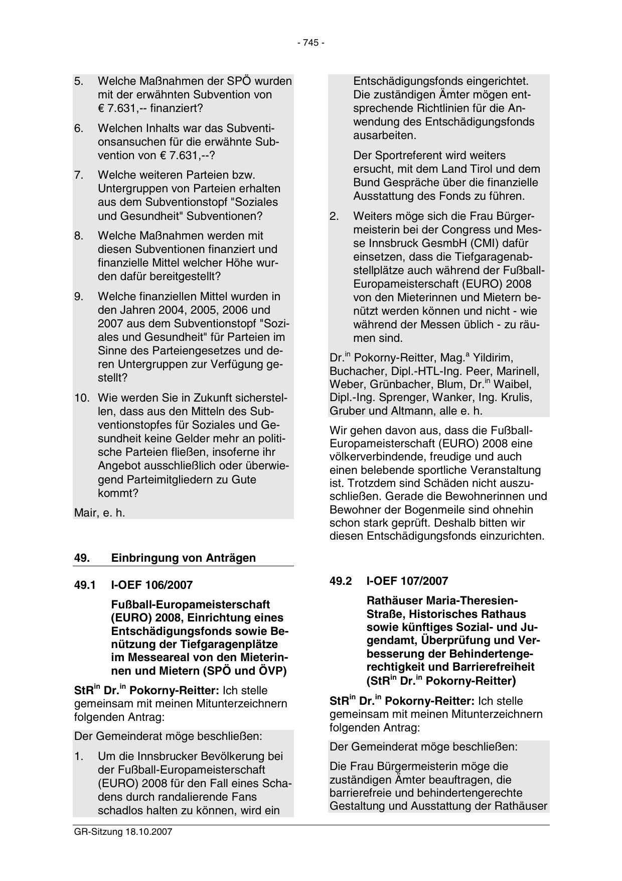 Weiters möge sich die Frau Bürgermeisterin bei der Congress und Messe Innsbruck GesmbH (CMI) dafür
