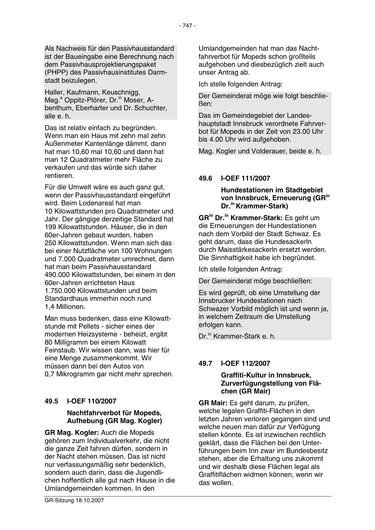 Das im Gemeindegebiet der Landeshauptstadt Innsbruck verordnete Fahrverbot für Mopeds in der Zeit von 23.00 Uhr