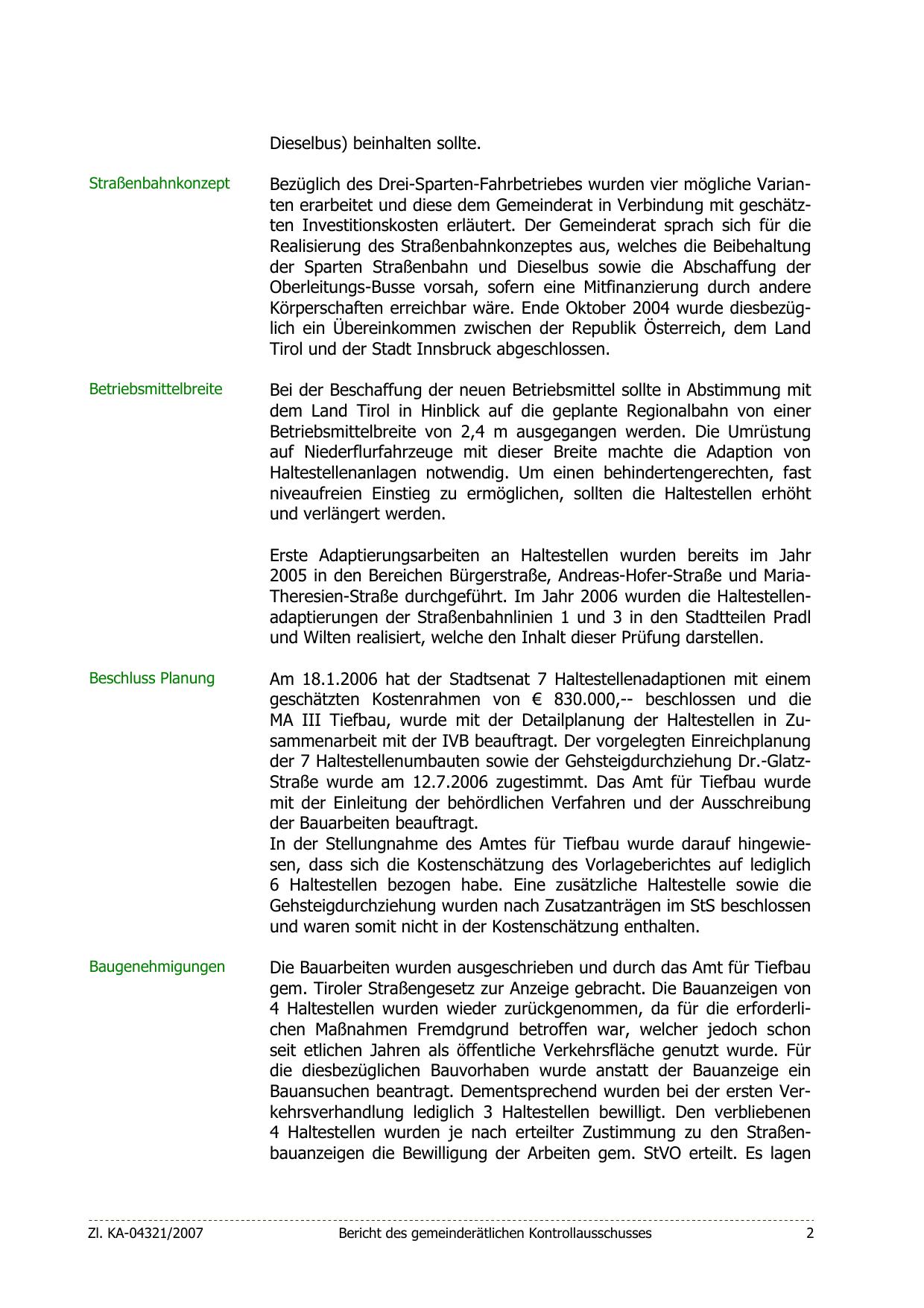 MA III Tiefbau, wurde mit der Detailplanung der Haltestellen in Zusammenarbeit mit der IVB beauftragt. Der vorgelegten Einreichplanung