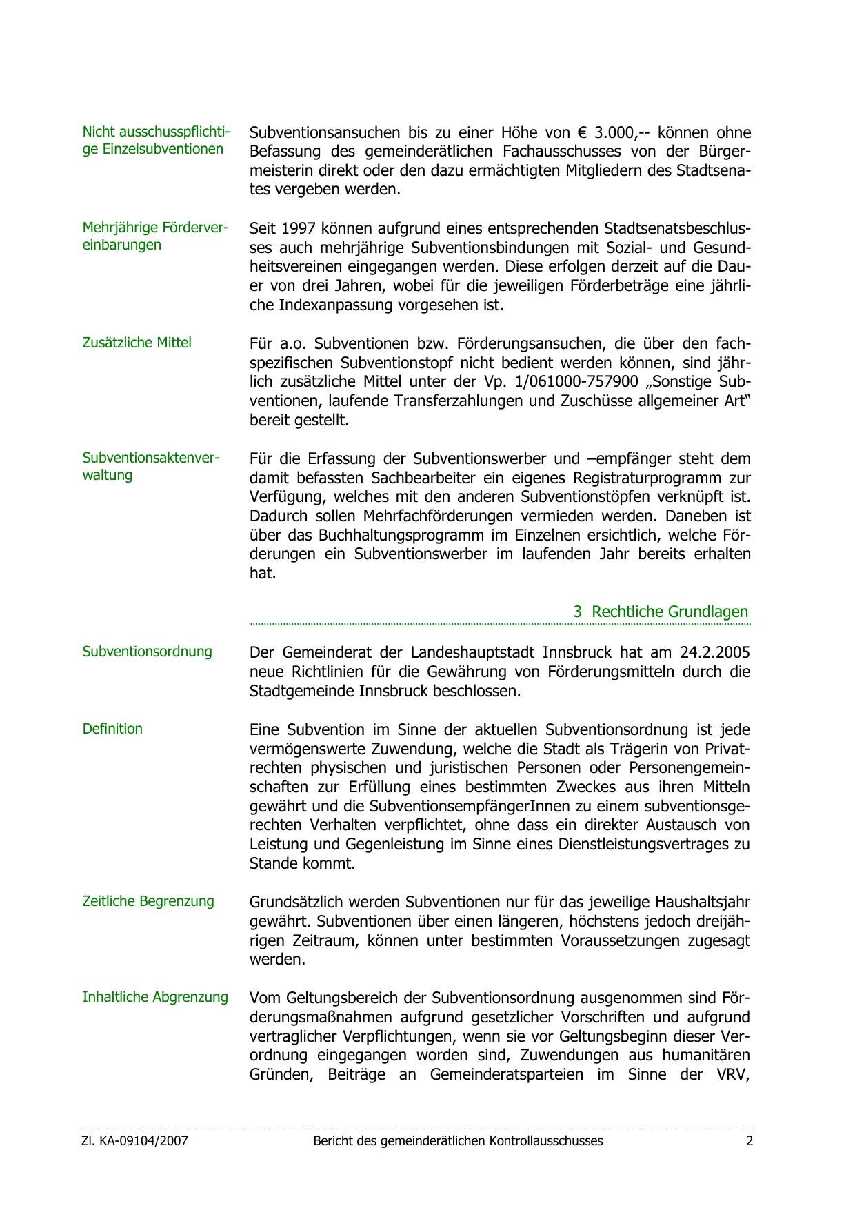 Seit 1997 können aufgrund eines entsprechenden Stadtsenatsbeschlusses auch mehrjährige Subventionsbindungen mit Sozial- und Gesundheitsvereinen eingegangen werden. Diese erfolgen derzeit auf die Dauer von drei Jahren, wobei für die jeweiligen Förderbeträge eine jährliche Indexanpassung vorgesehen ist.