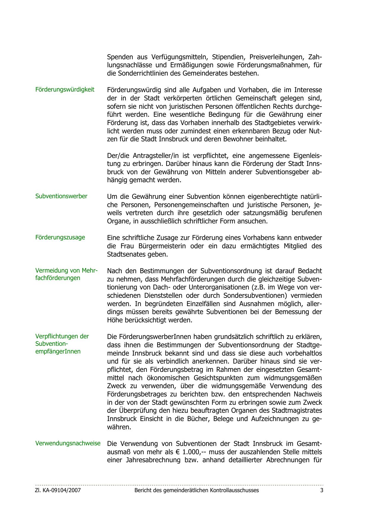 dass ihnen die Bestimmungen der Subventionsordnung der Stadtgemeinde Innsbruck bekannt sind und dass sie diese auch vorbehaltlos