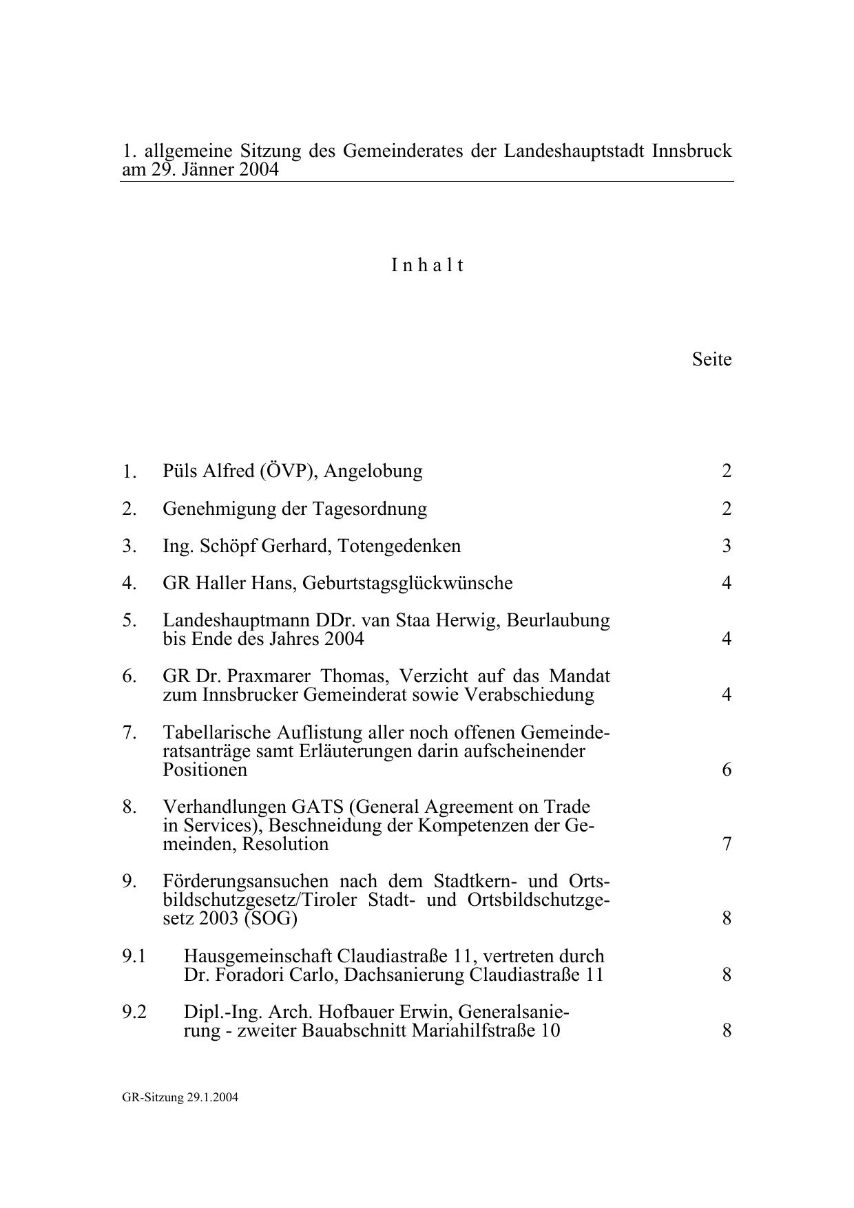 1. allgemeine Sitzung des Gemeinderates der Landeshauptstadt Innsbruck
