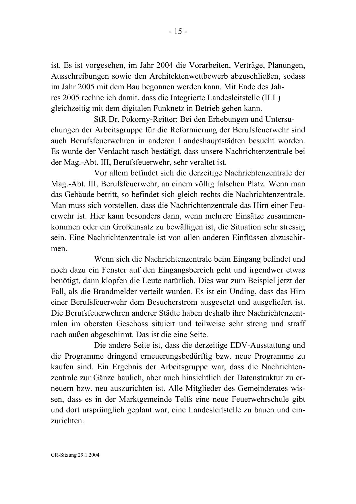 StR Dr. Pokorny-Reitter: Bei den Erhebungen und Untersuchungen der Arbeitsgruppe für die Reformierung der Berufsfeuerwehr sind