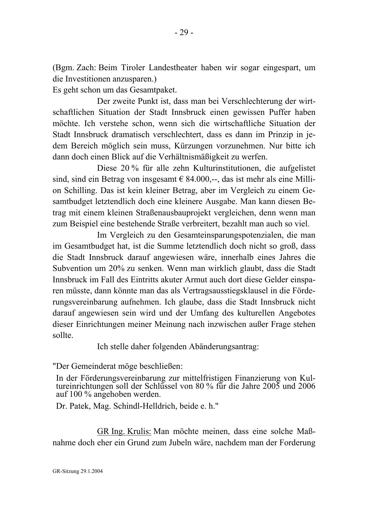 Stadt Innsbruck dramatisch verschlechtert, dass es dann im Prinzip in jedem Bereich möglich sein muss, Kürzungen vorzunehmen. Nur bitte ich