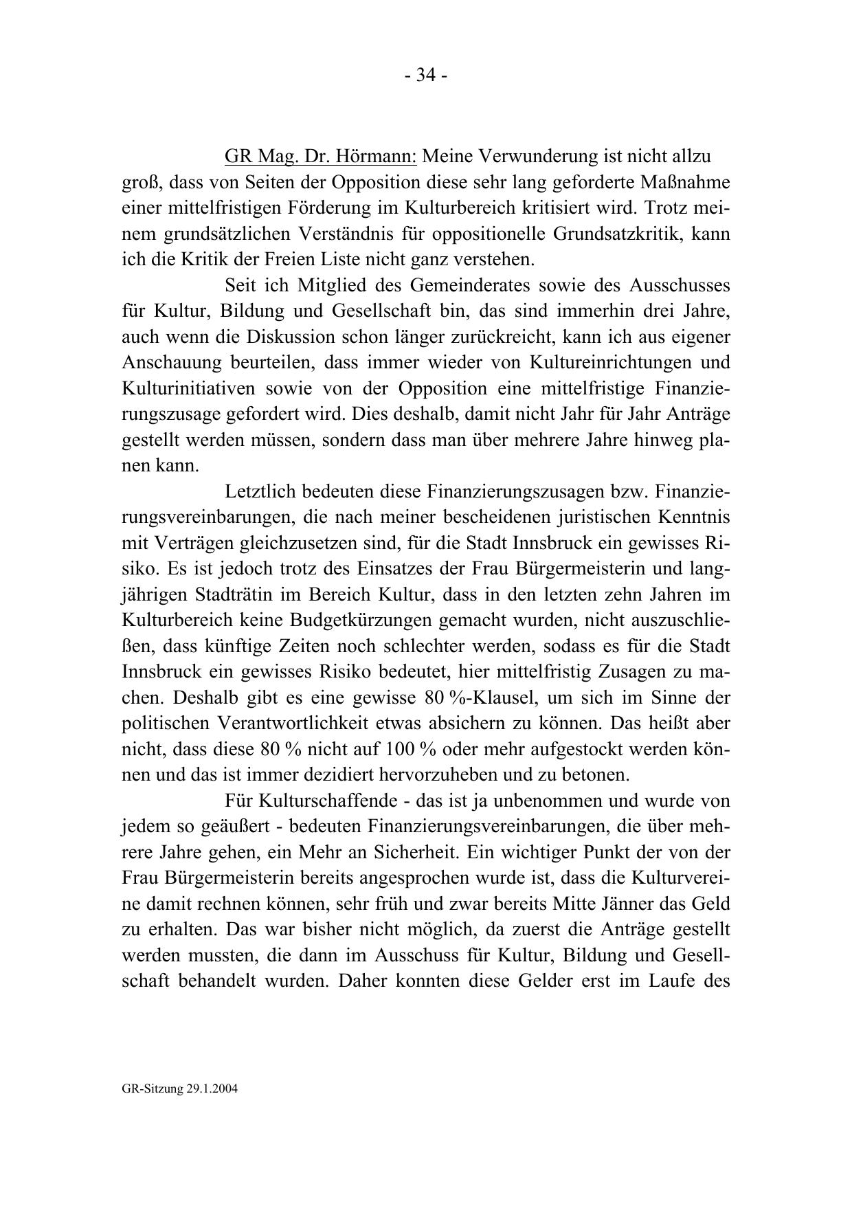 mit Verträgen gleichzusetzen sind, für die Stadt Innsbruck ein gewisses Risiko. Es ist jedoch trotz des Einsatzes der Frau Bürgermeisterin und langjährigen Stadträtin im Bereich Kultur, dass in den letzten zehn Jahren im