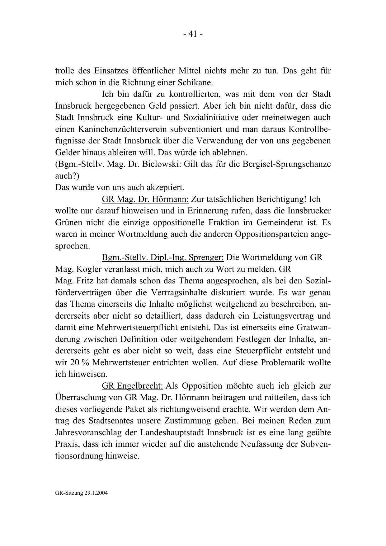 Bgm.-Stellv. Dipl.-Ing. Sprenger: Die Wortmeldung von GR