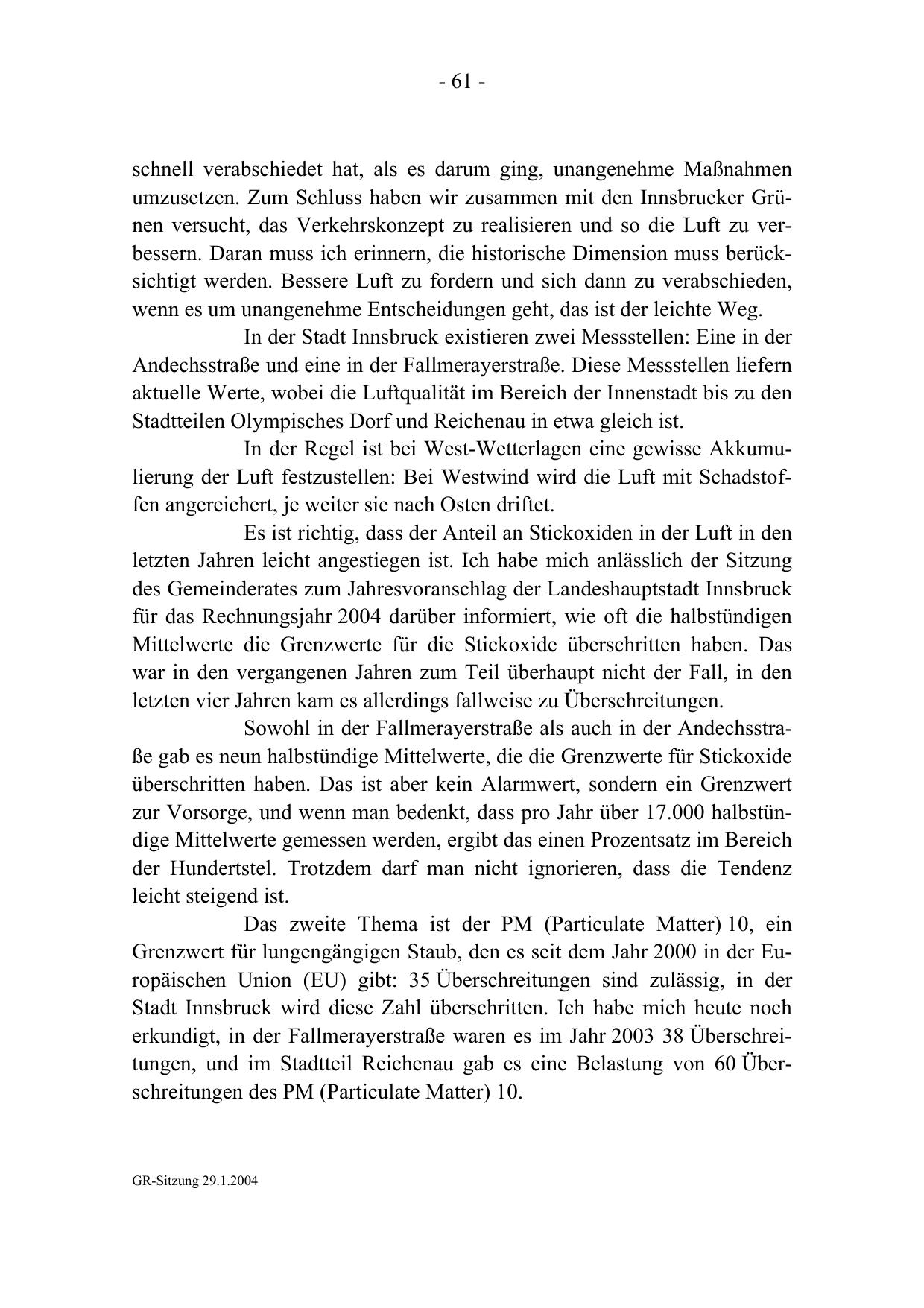 umzusetzen. Zum Schluss haben wir zusammen mit den Innsbrucker Grünen versucht, das Verkehrskonzept zu realisieren und so die Luft zu verbessern. Daran muss ich erinnern, die historische Dimension muss berücksichtigt werden. Bessere Luft zu fordern und sich dann zu verabschieden,