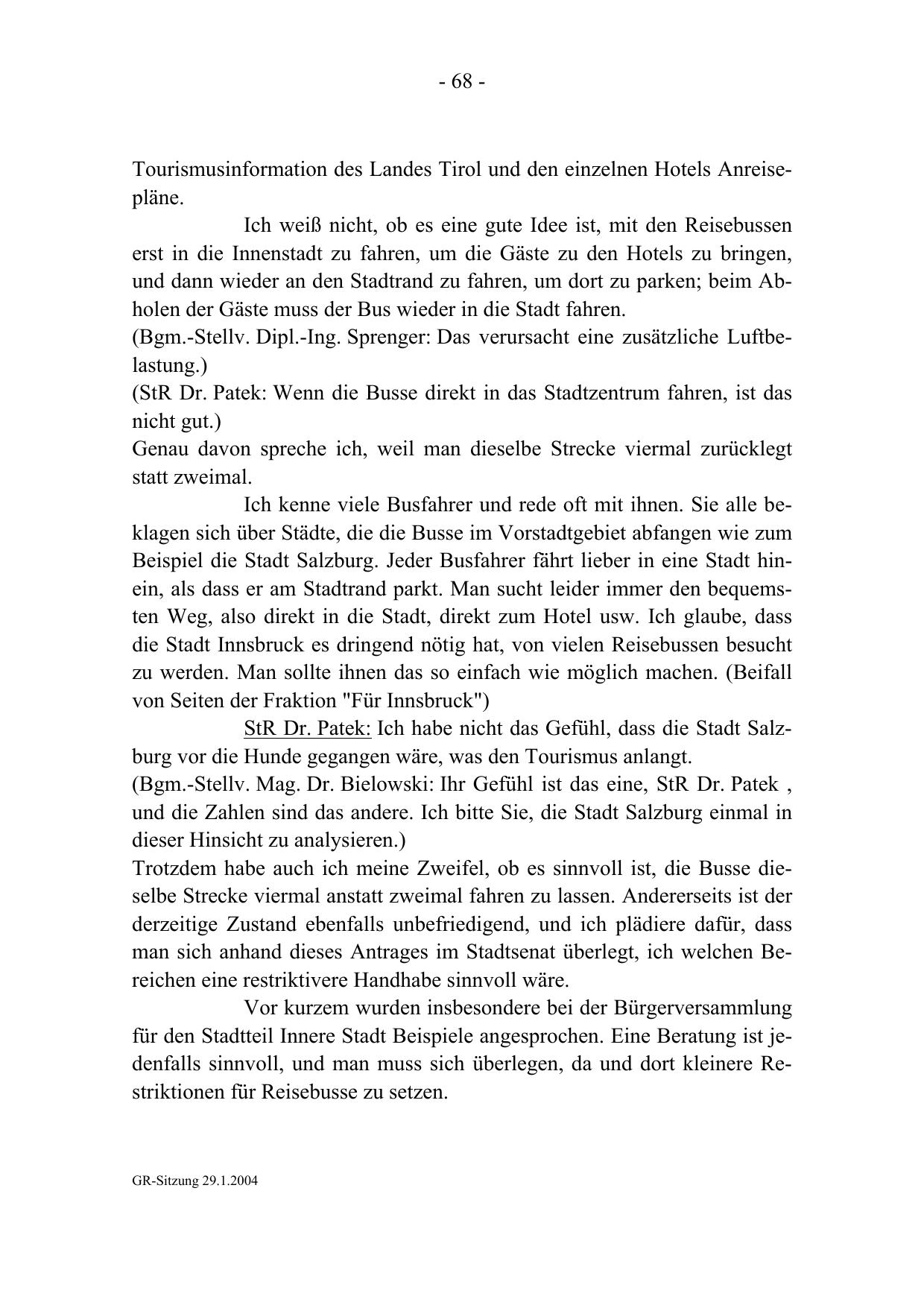 (Bgm.-Stellv. Mag. Dr. Bielowski: Ihr Gefühl ist das eine, StR Dr. Patek ,